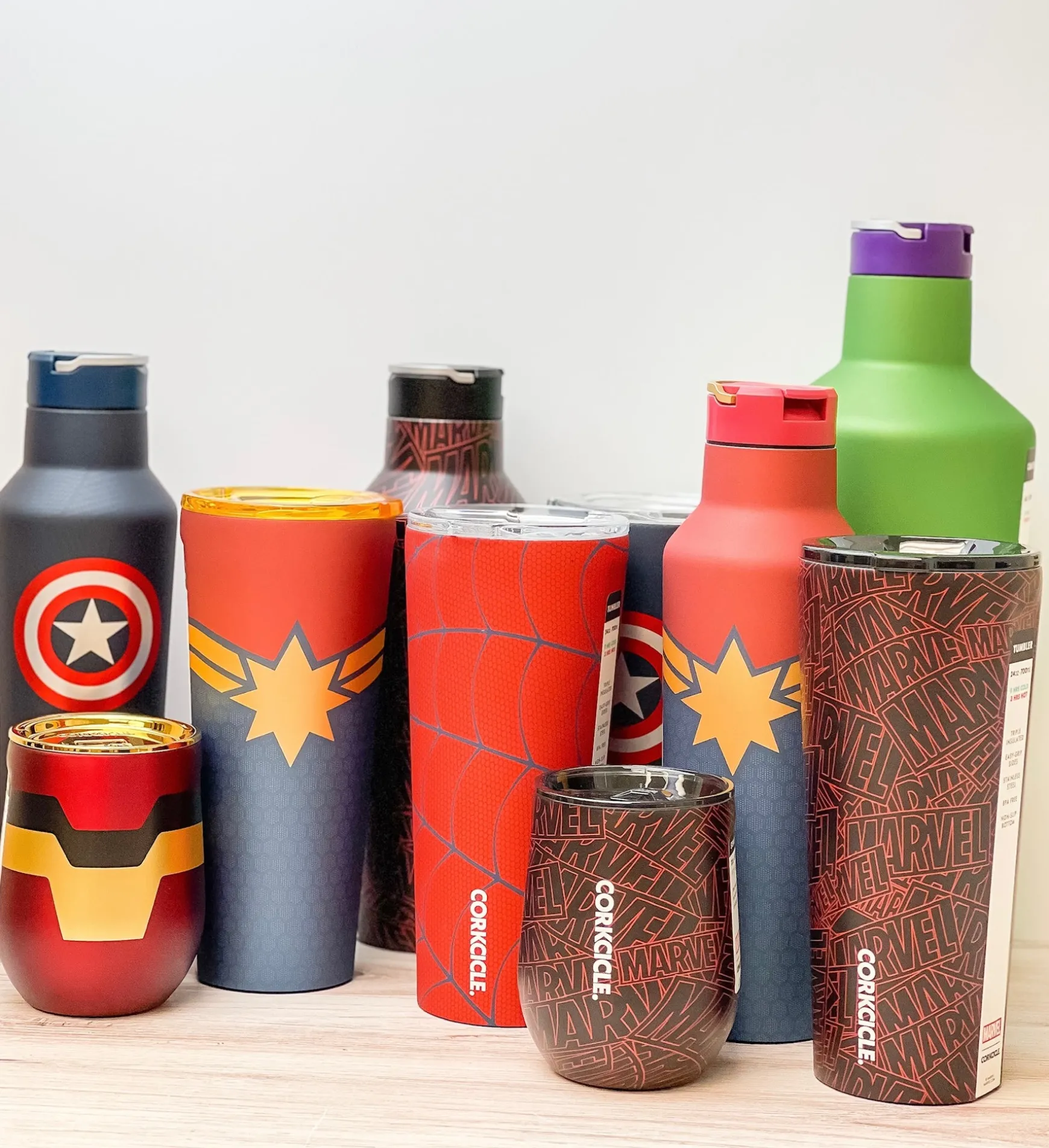 Explore the Marvel Cinematic Universe with a powerful collection of sleek Corkcicle Drinkware inspired by your favorite superheroes.