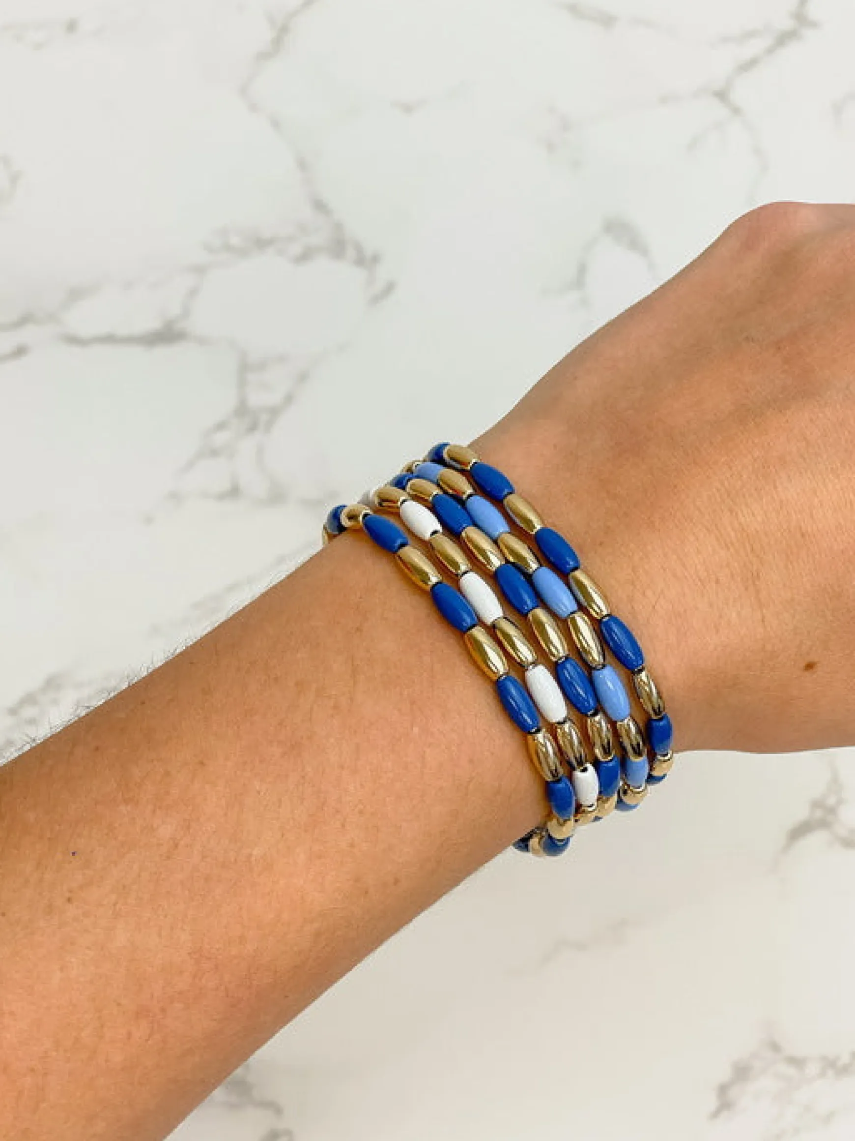 Blue Rice Bead Stretch Bracelet Set