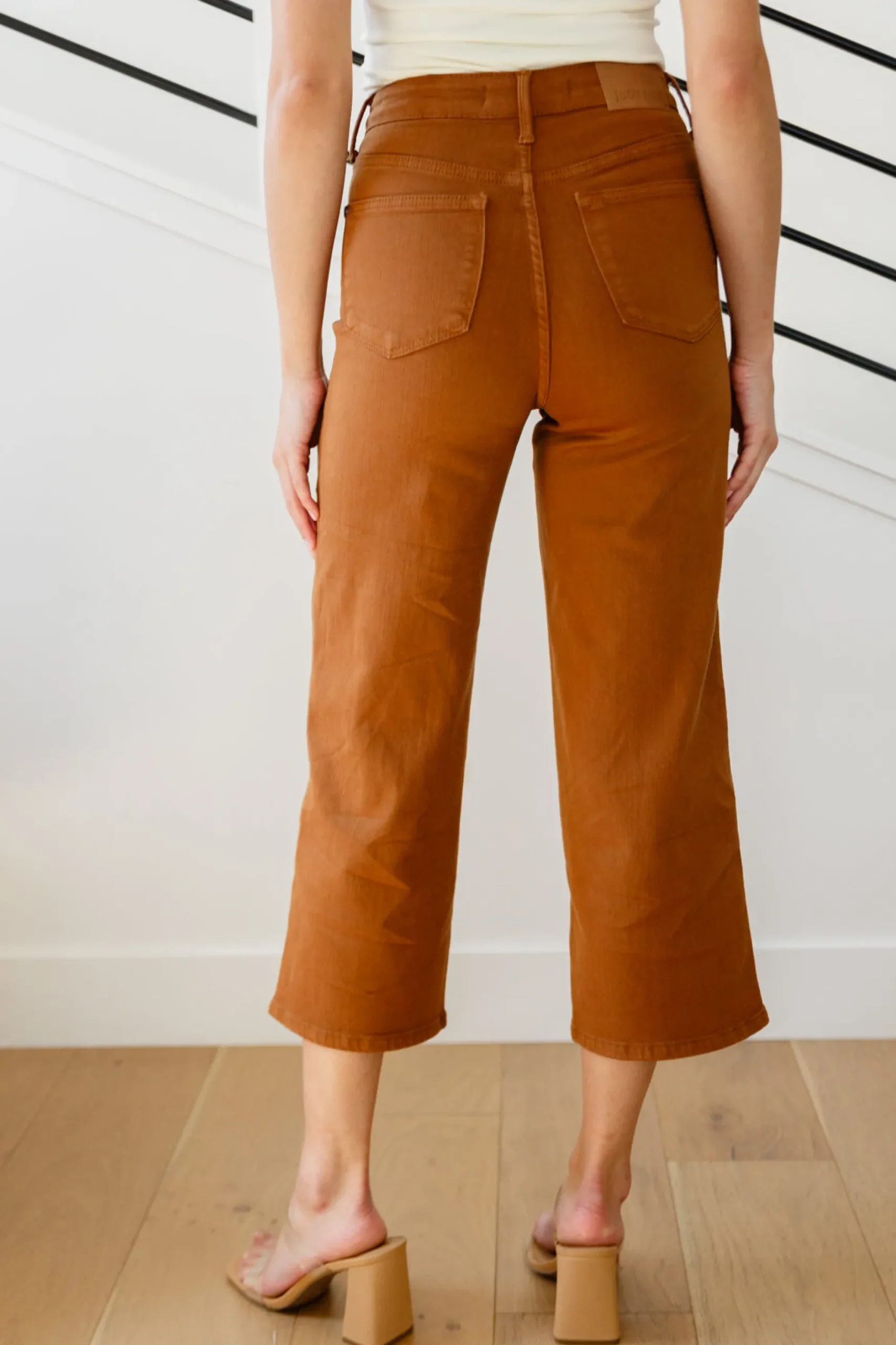 Discover your new favorite jeans with Briar’s High Rise Control Top Wide Leg Crop Jeans from Judy Blue. Our triple threat of design, fit, and color come together for maximum style, comfort, and chicness. Features include high rise, tummy control tech, and a wide leg crop in a warm rich garment-dyed camel. Complete with coordinating hardware and you’re ready to look and feel amazing!