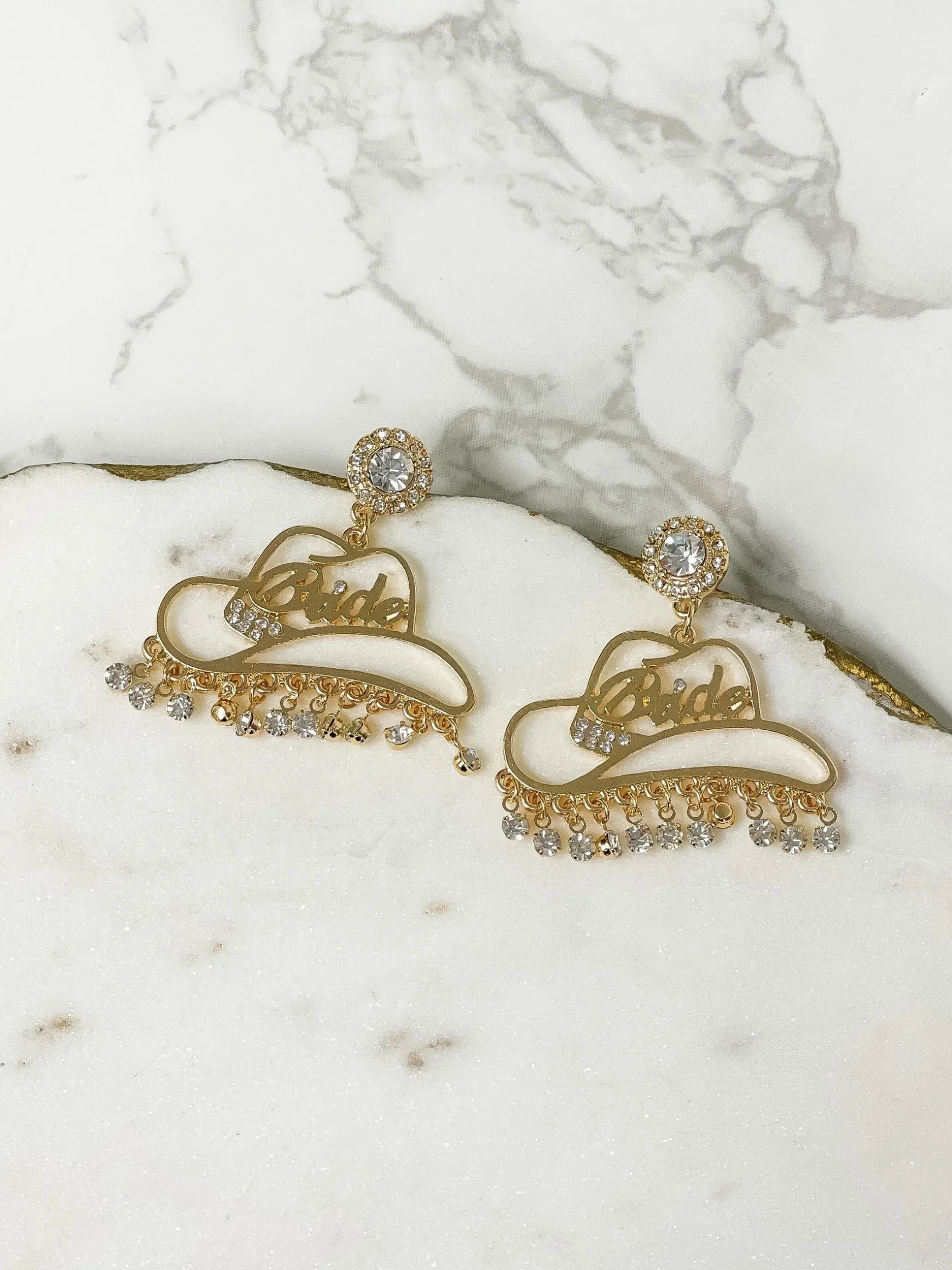 Cowgirl Bride Crystal Dangle Earrings – Gold