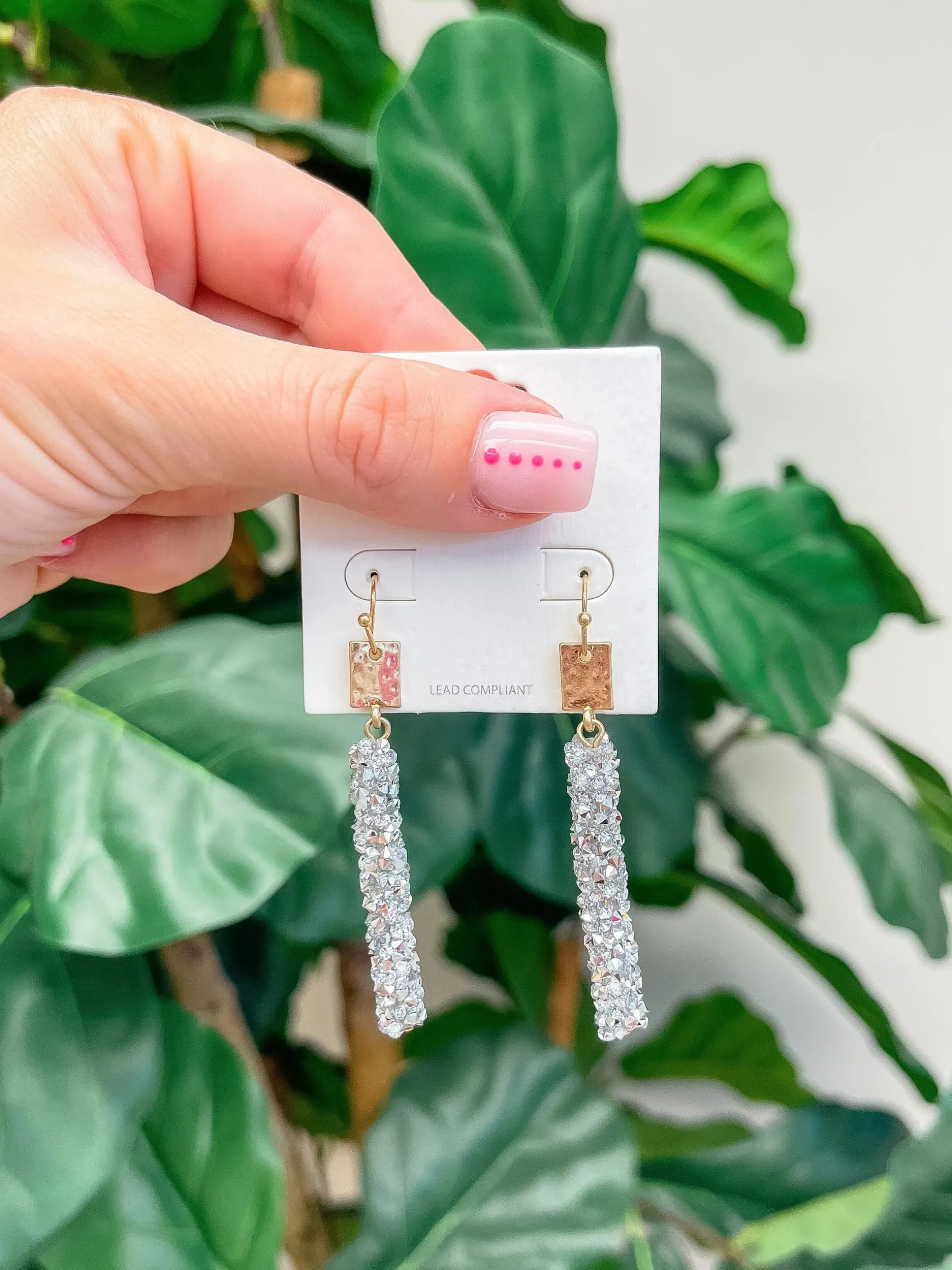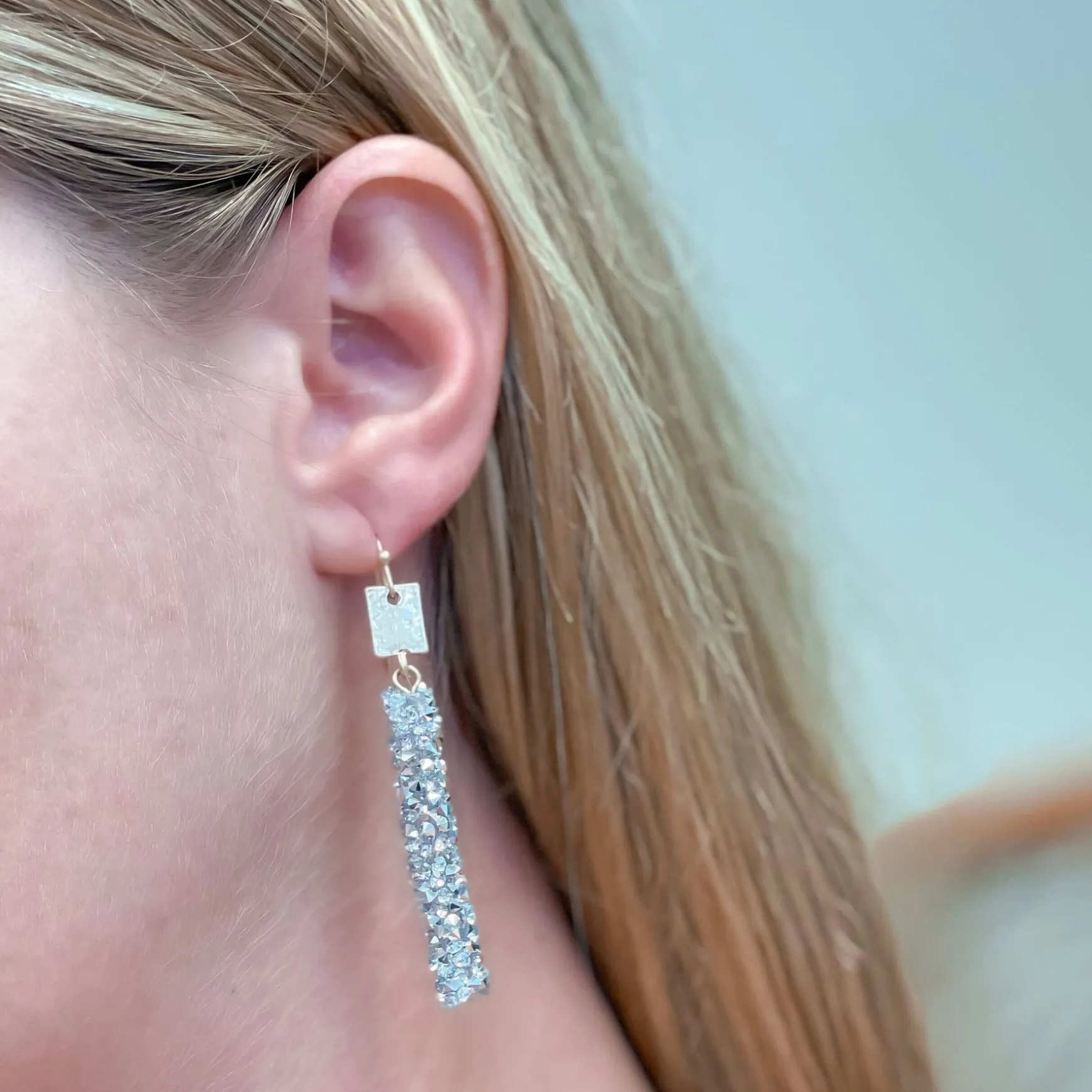 Crystal Encrusted Straight Dangle Earrings – Silver