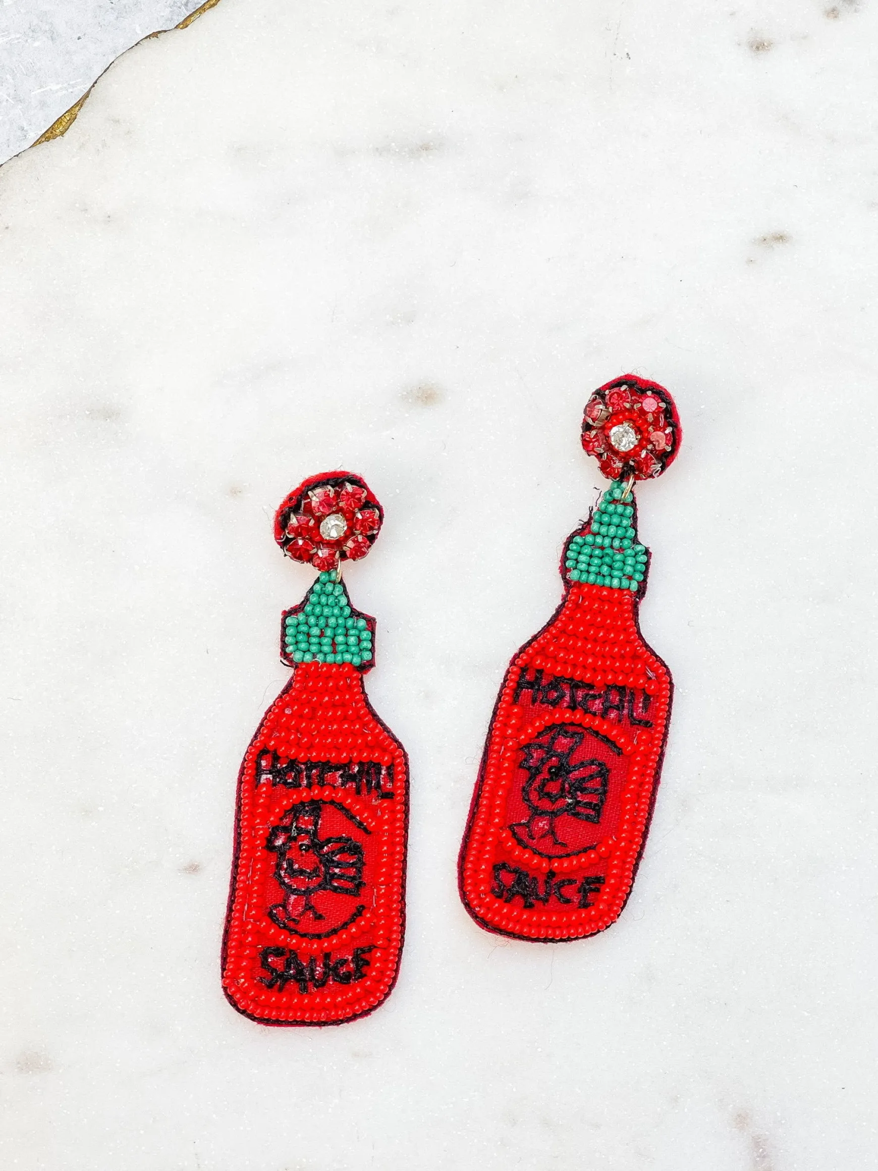 Add a little spice to your outfit with the Hot Sauce Beaded Earrings! A beaded design makes up the shape and color of a hot sauce bottle, how stinking cute! These fun statement earrings speak for themselves!