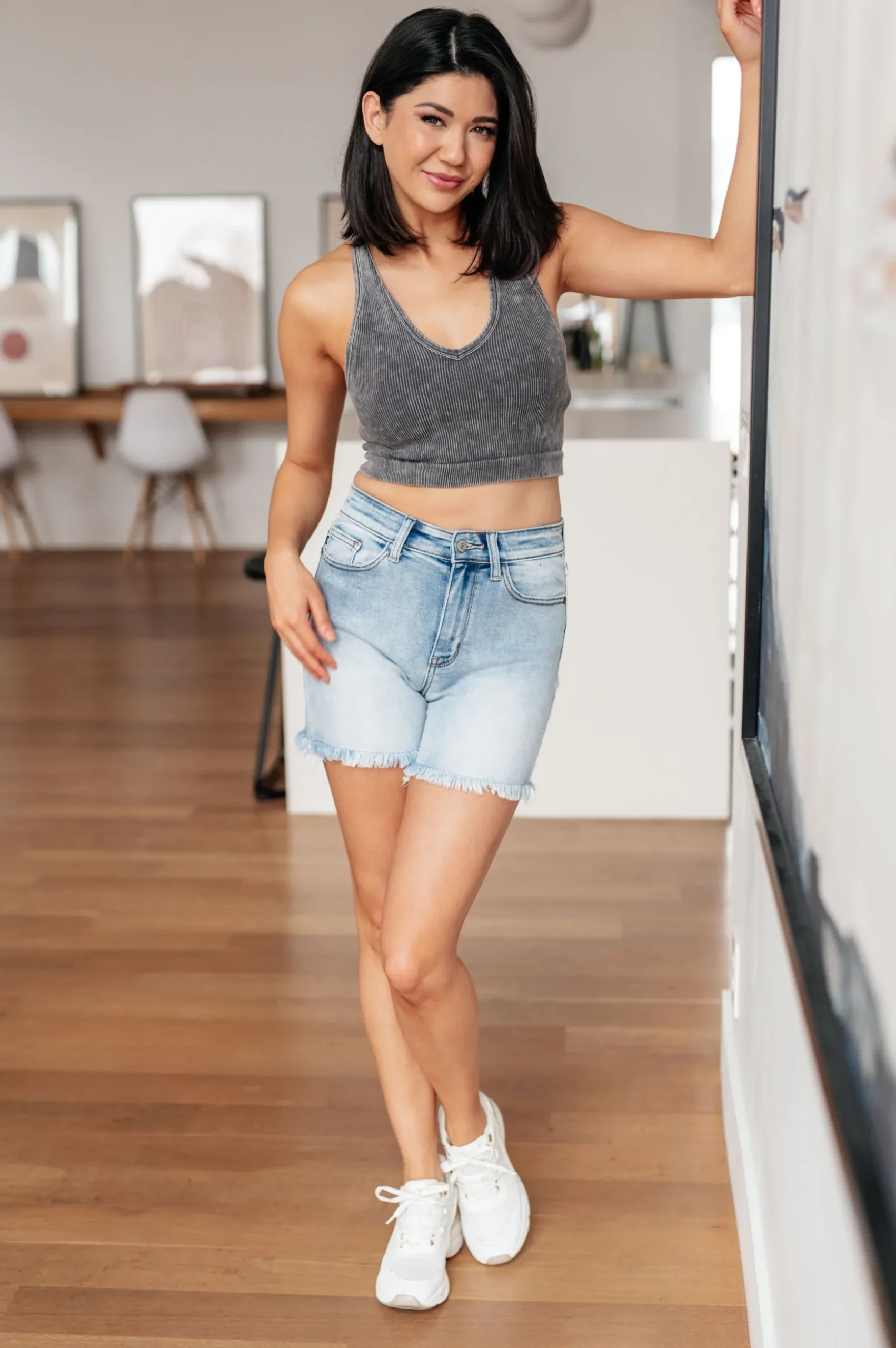Take on the day in style with Jenny High Rise Cutoff Dad Shorts from Judy Blue. These trendy shorts feature a high rise waist for a flattering fit and a light wash for a cool, casual look. The cutoff raw hem adds an edgy touch, perfect for channeling your inner dad style.