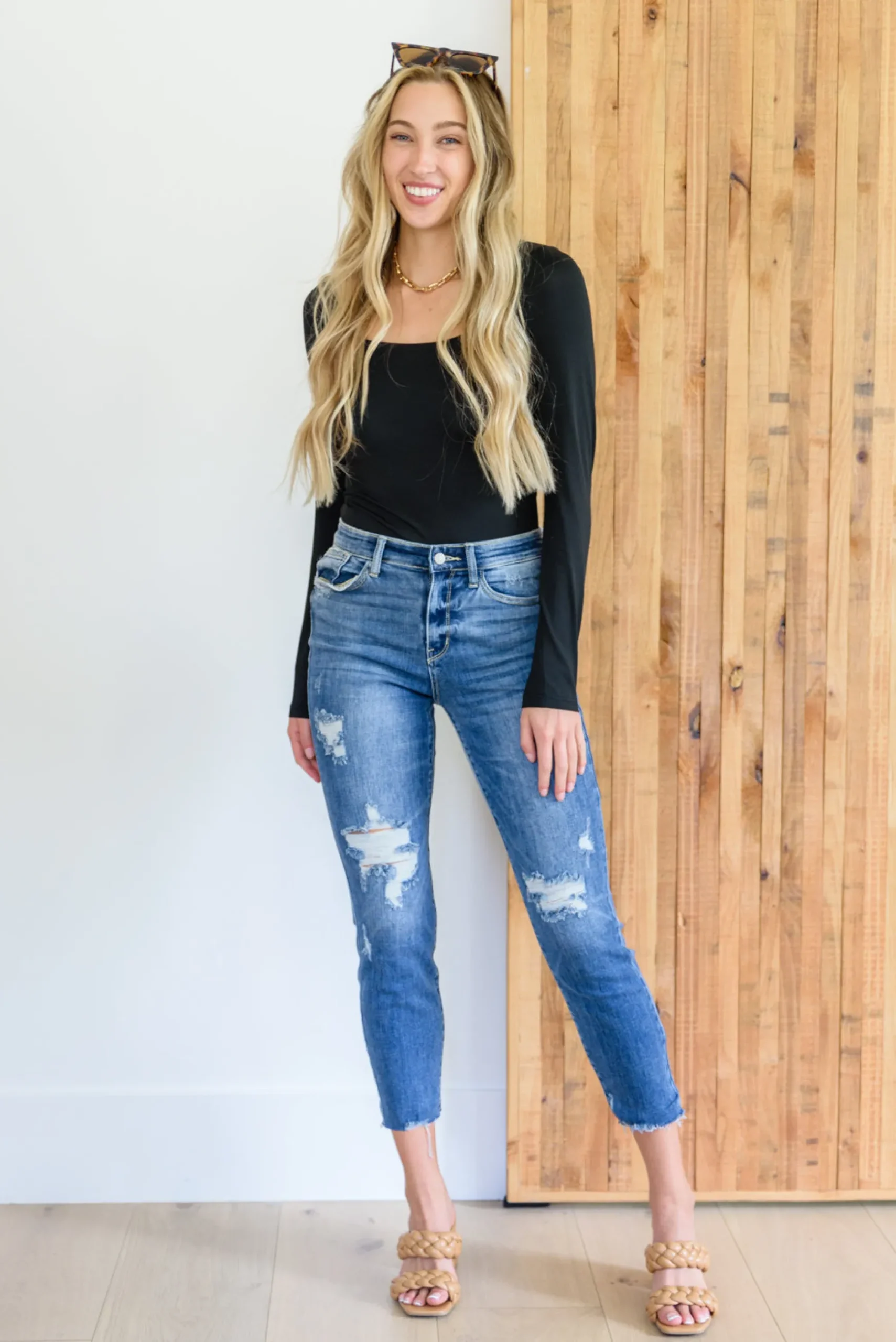 Make a scene in the Kyla Destroyed Hi Waist Relaxed Fit jeans! These staple jeans have all the qualities your other jeans are missing. Featuring a stretchy medium wash denim that shapes a hi-waist, five pocket cut, relaxed fit silhouette and distressing through the legs. Perfect for all your fall fits!