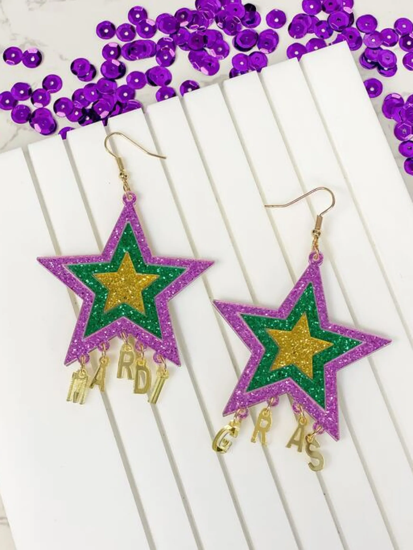 ‘Mardi Gras’ Star Glitter Dangle Earrings