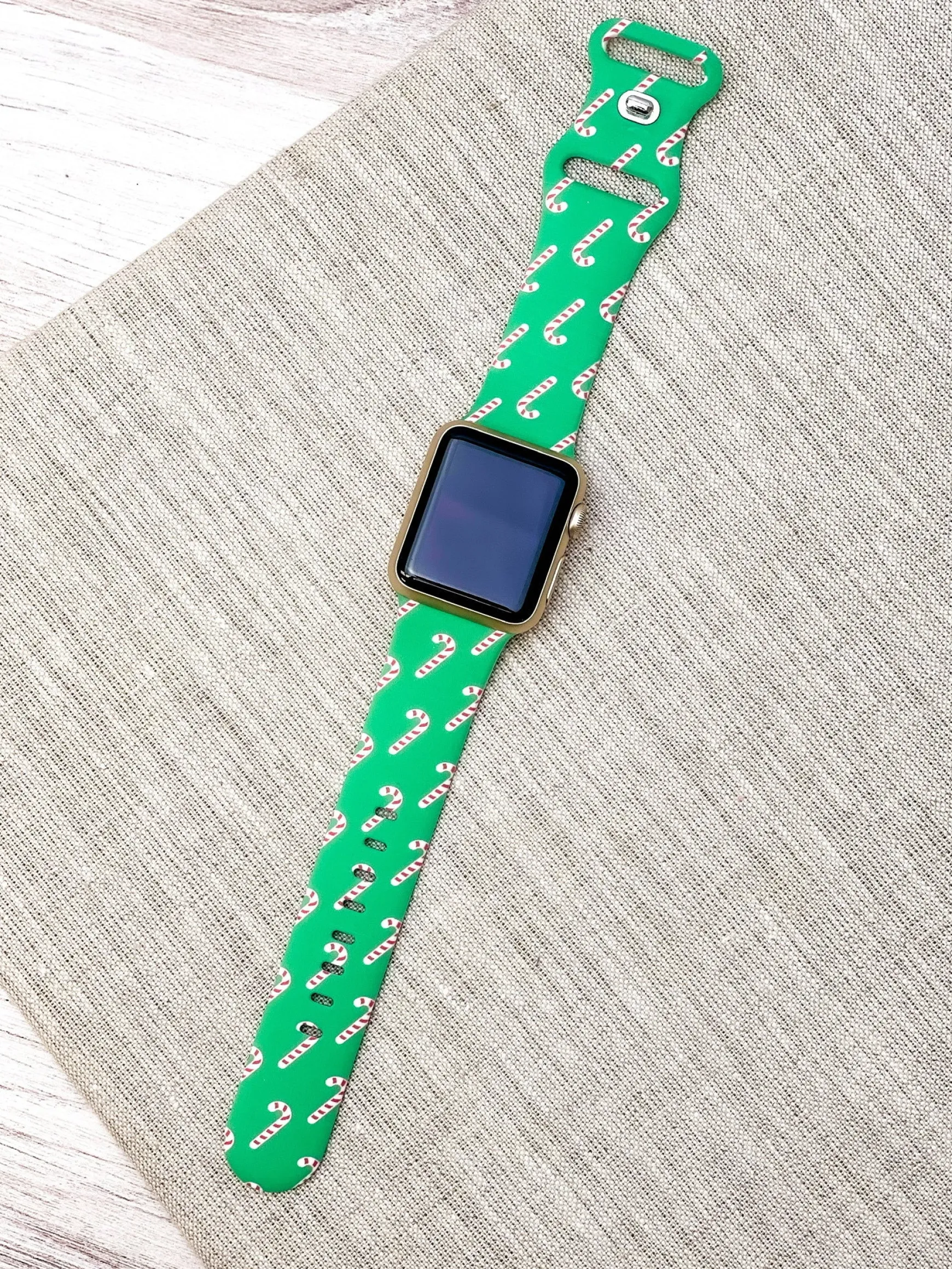 Mint Candy Cane Printed Silicone Smart Watch Band – One Size