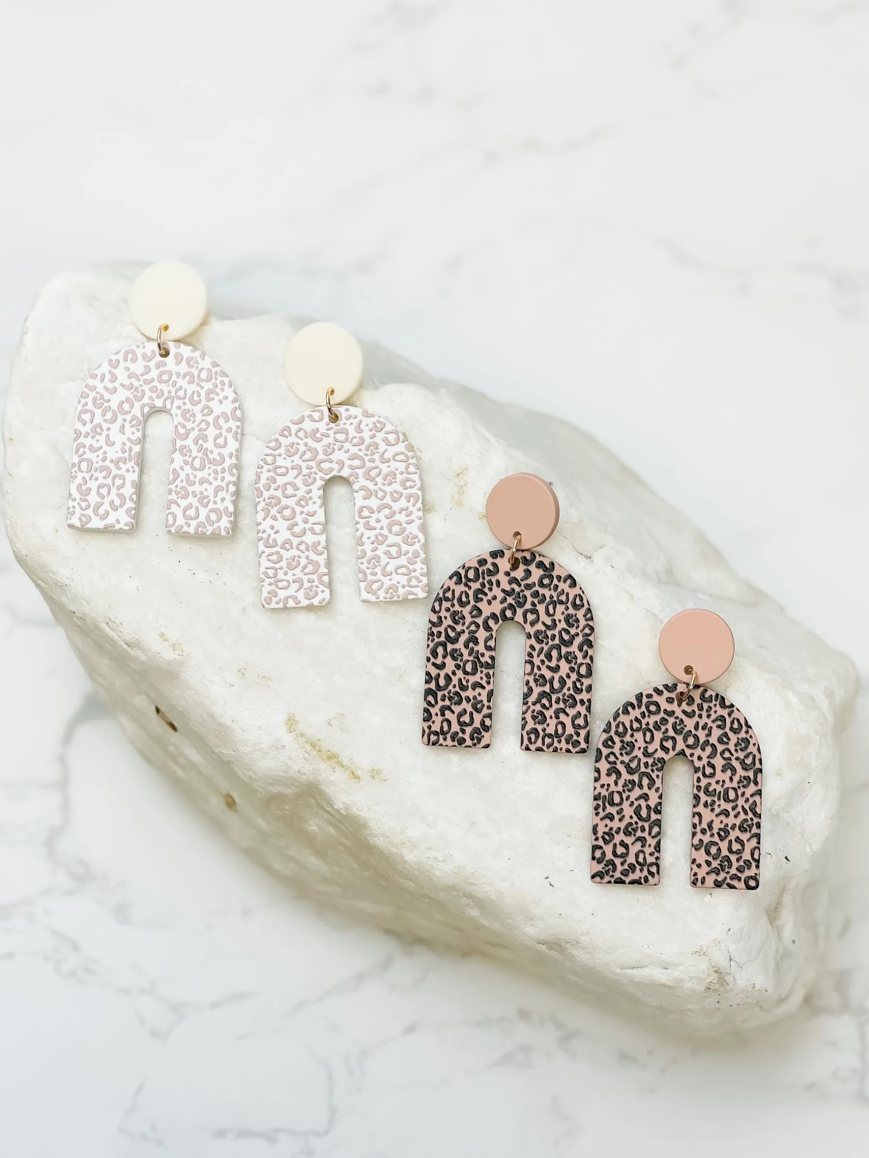 Natural Leopard Arch Dangle Earrings – White