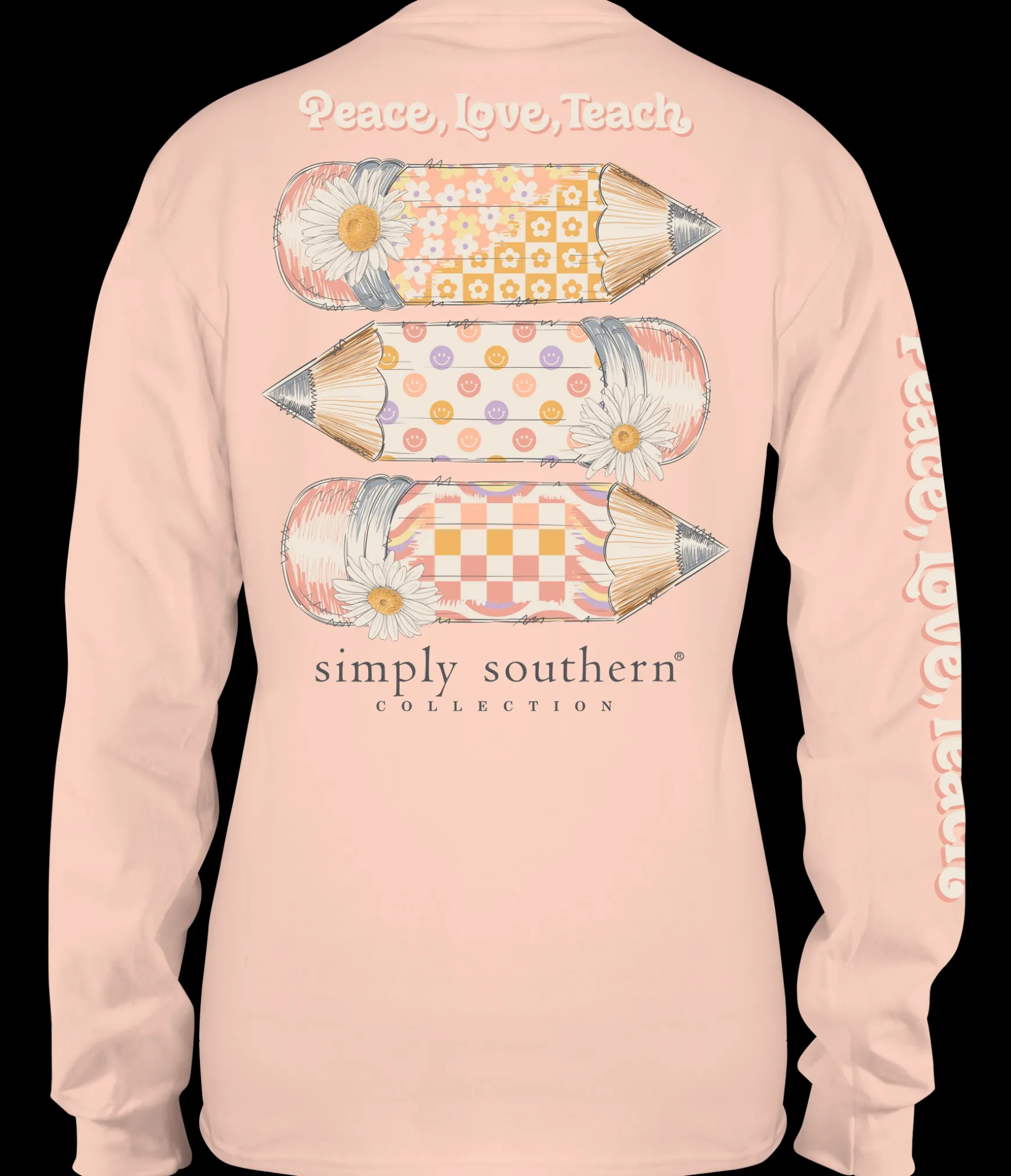 Be the first to review “‘Peace Love Teach’ Long Sleeve Tee by Simply Southern” Cancel reply