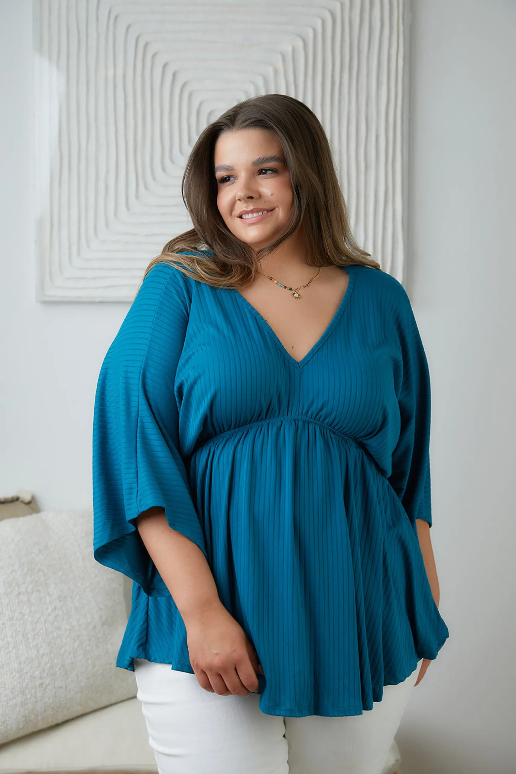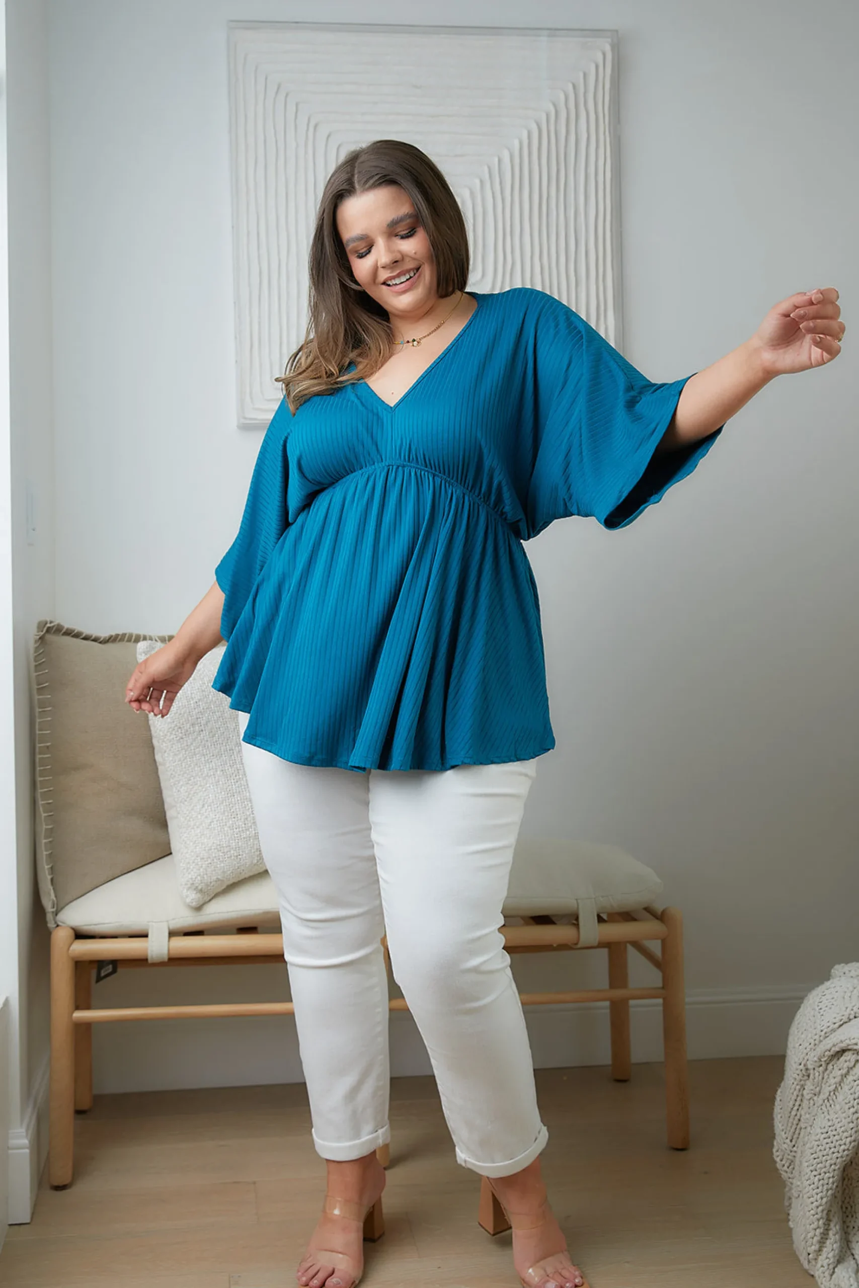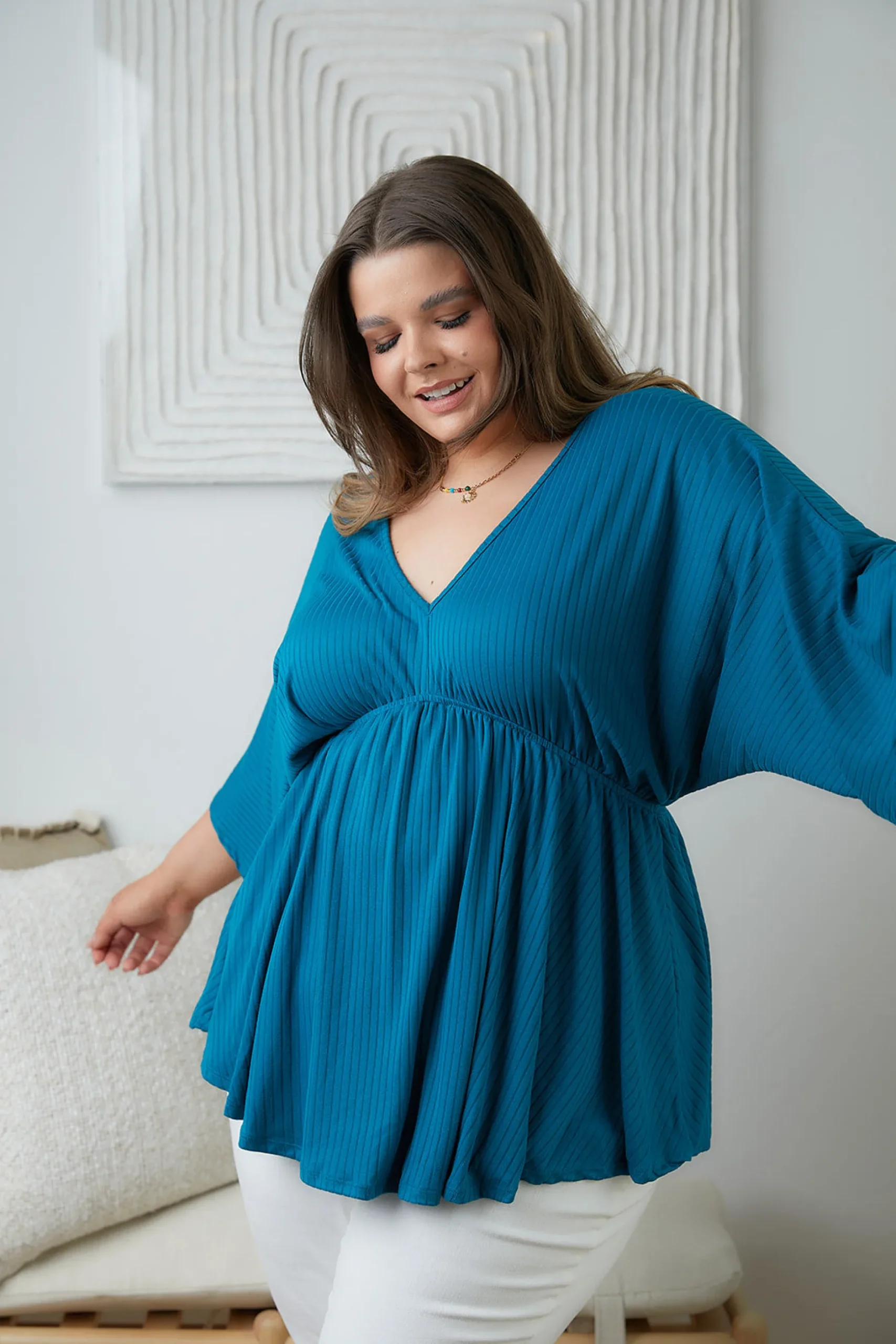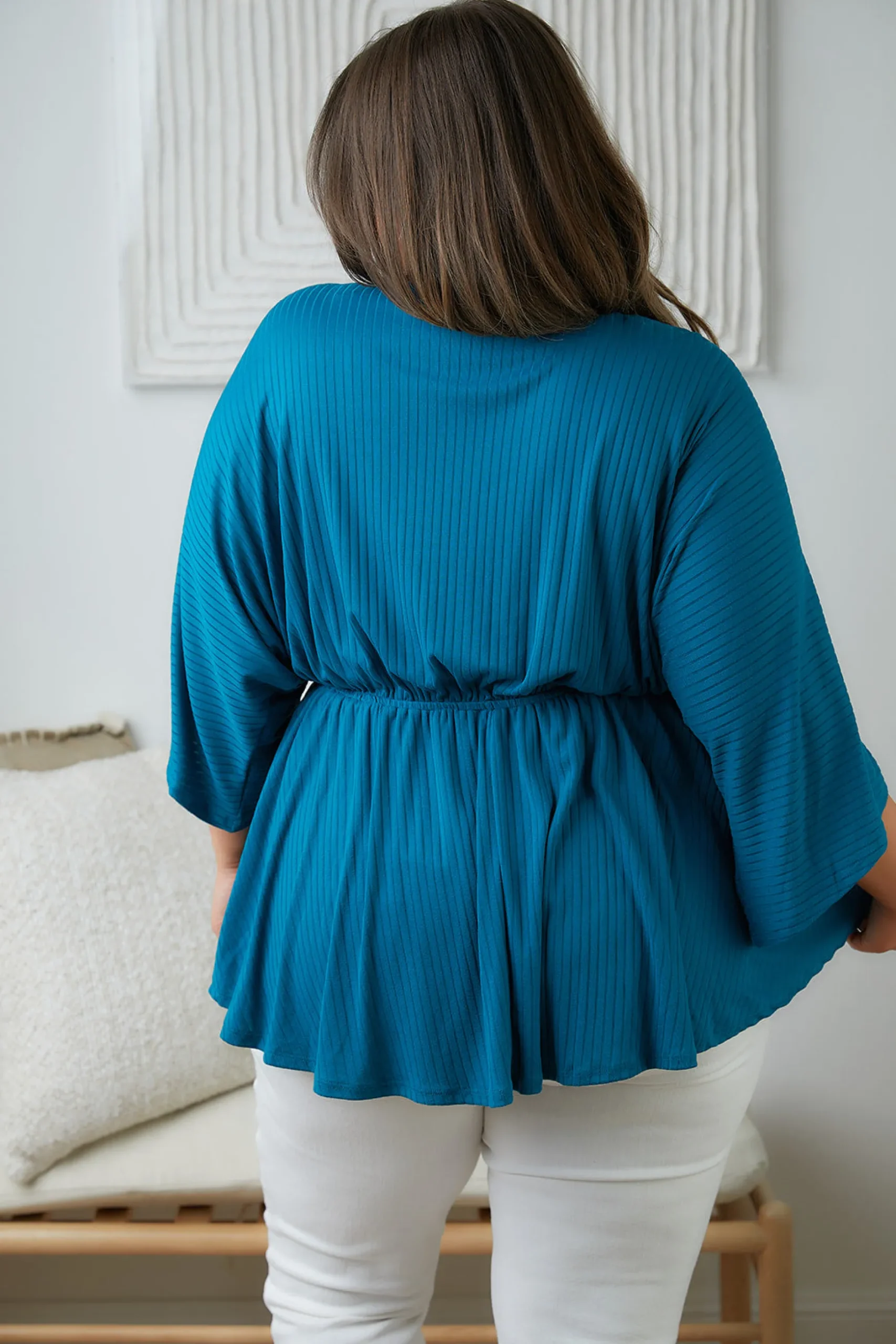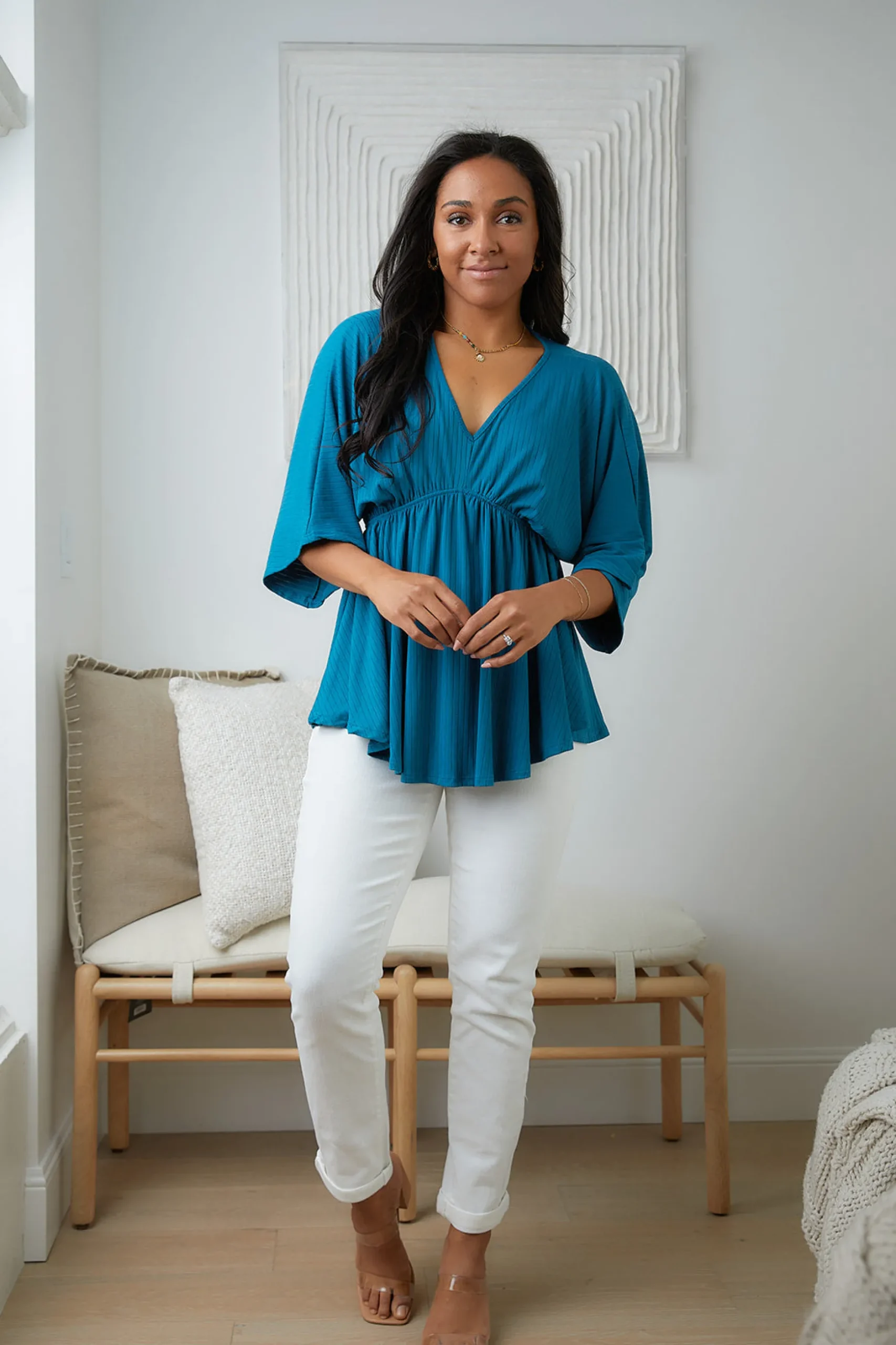 Experience timeless fashion with the Storied Moments Draped Peplum Top! This classic V-neck top is crafted from a jersey knit and features an elastic waistband and draped half sleeves that flatter all figures. The subtle peplum adds just the right amount of femininity. Enjoy effortless style every time you slip it on!