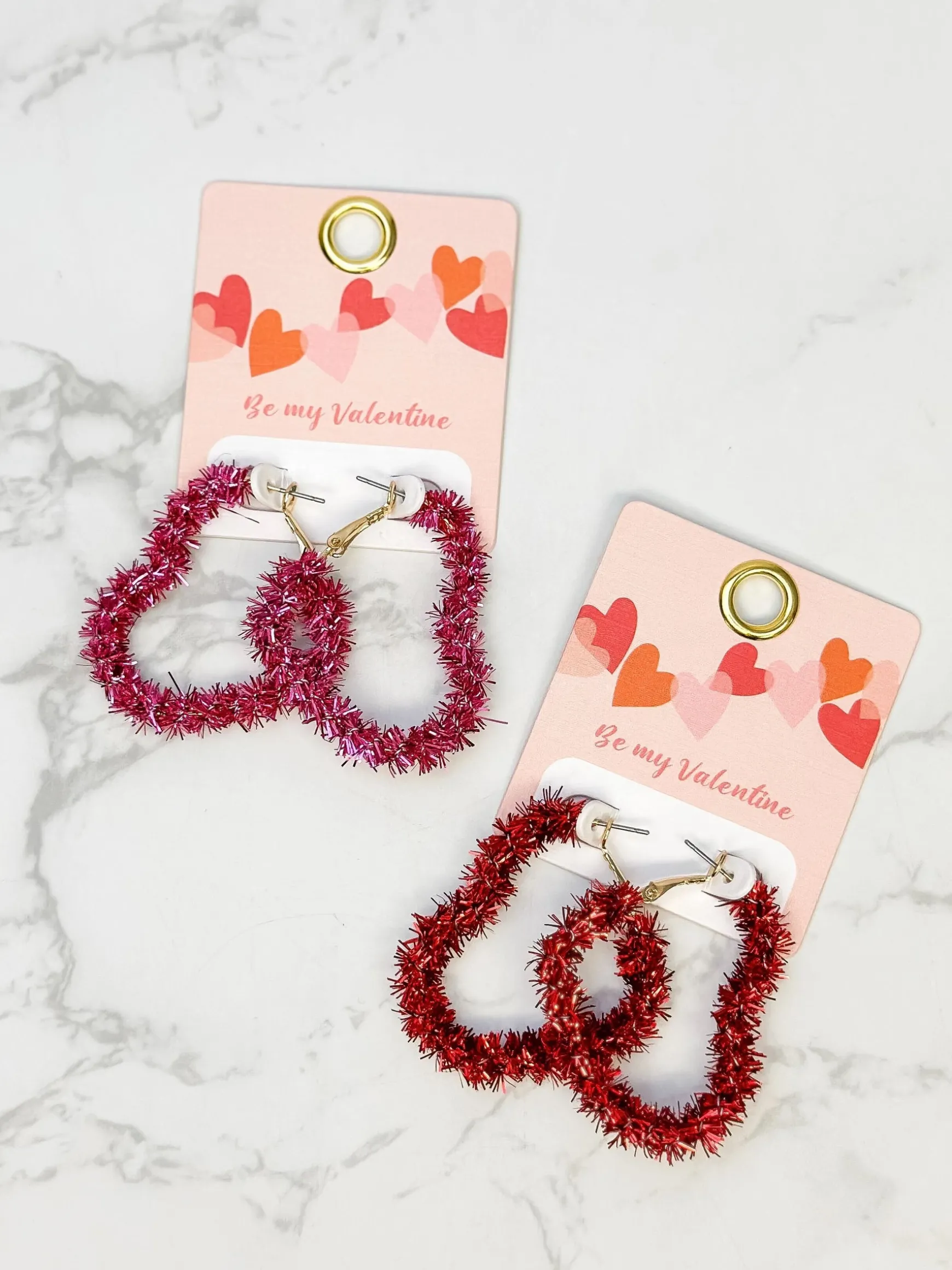 Bring a touch of festivity to your look with these Tinsel Heart Hoop Earrings.