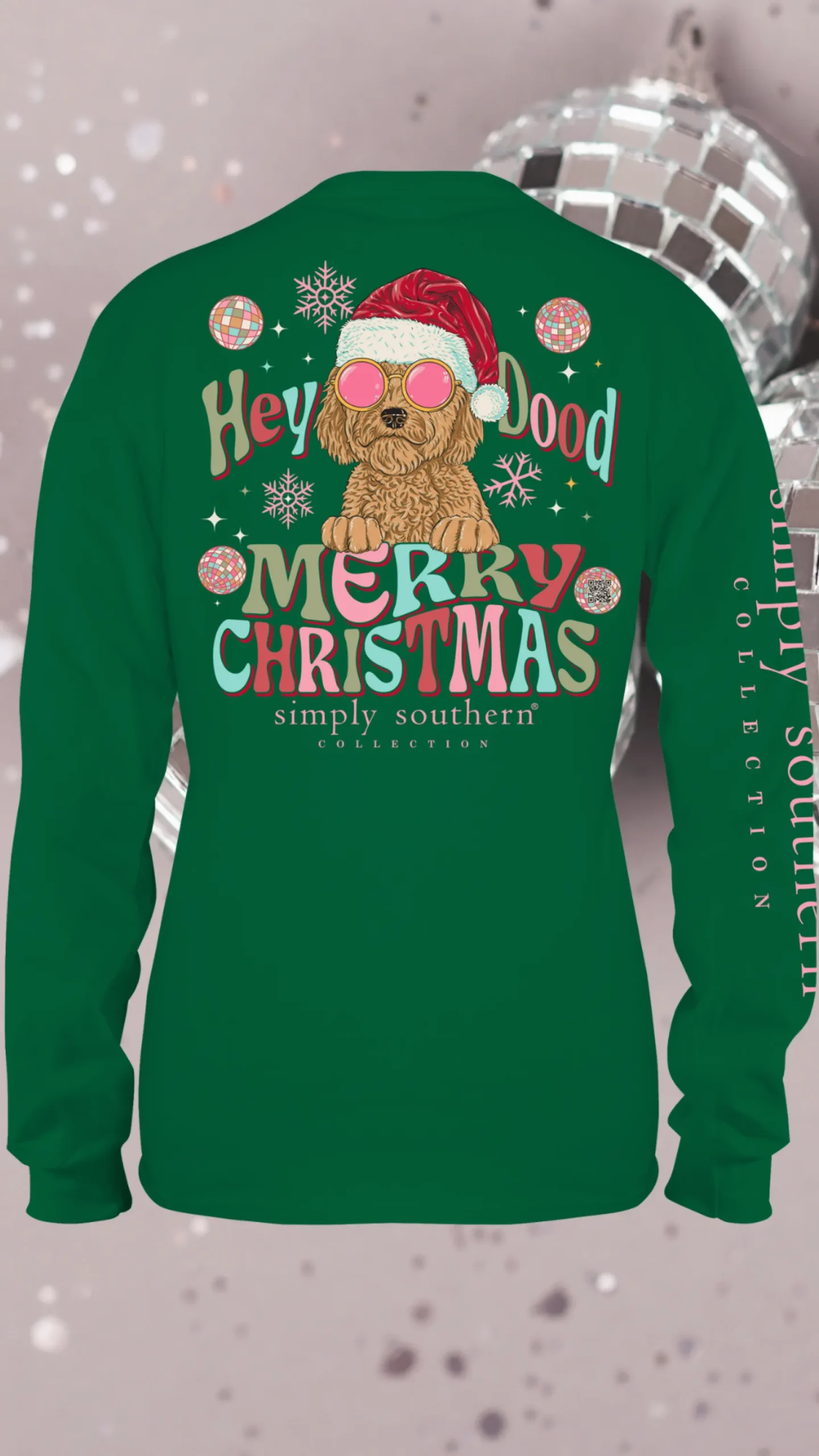 Youth ‘Hey Dood’ Christmas Pup Long Sleeve Tee by Simply Southern