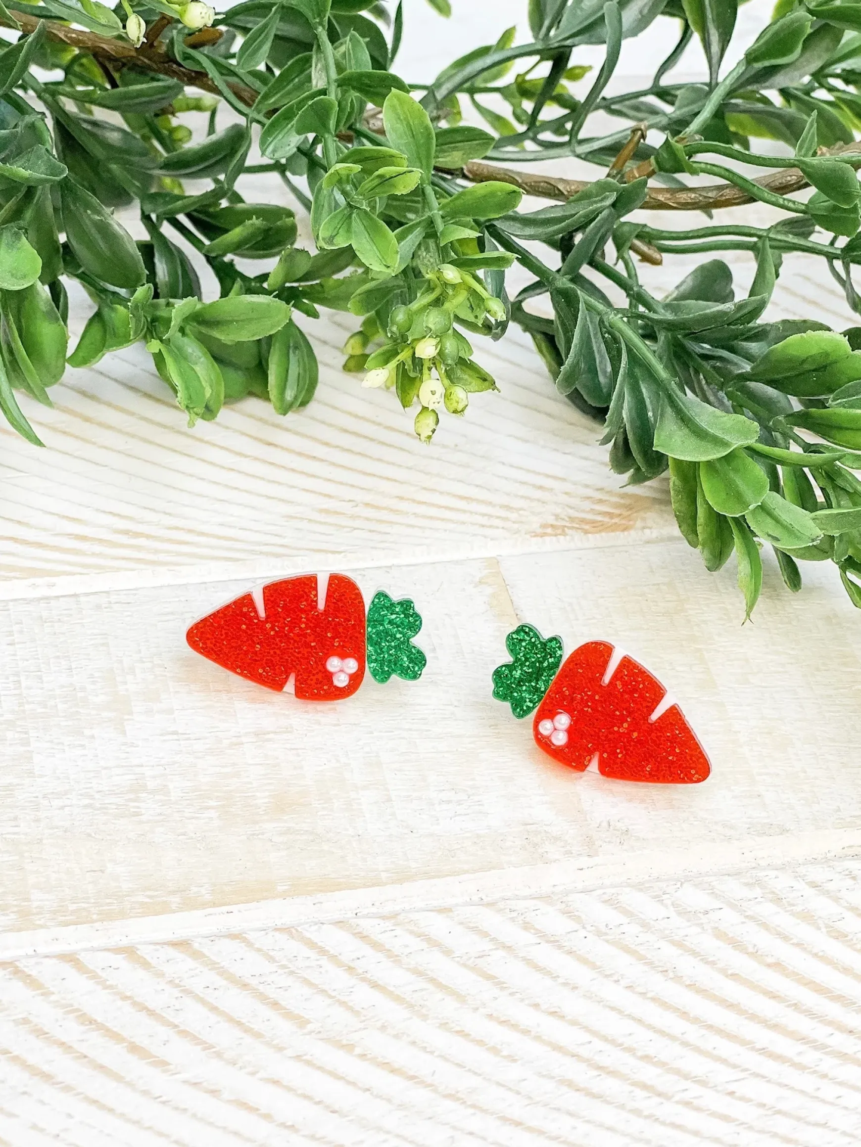 Add a fun and sparkly touch to your Easter outfit with our Acrylic Glitter Carrot Stud Earrings. These earrings are the perfect accessory to bring some festive cheer to your look, and the lightweight acrylic material makes them comfortable to wear all day.
