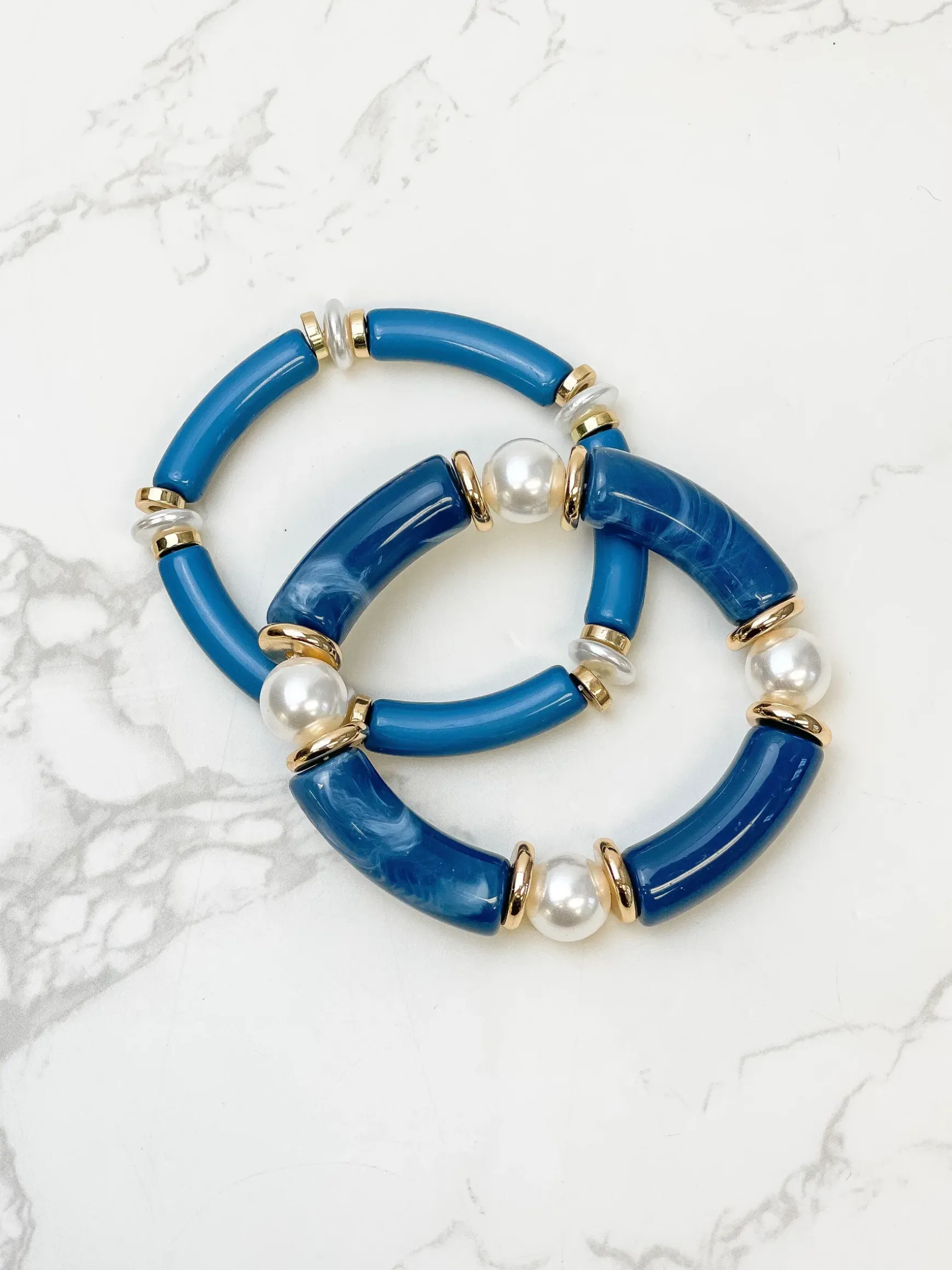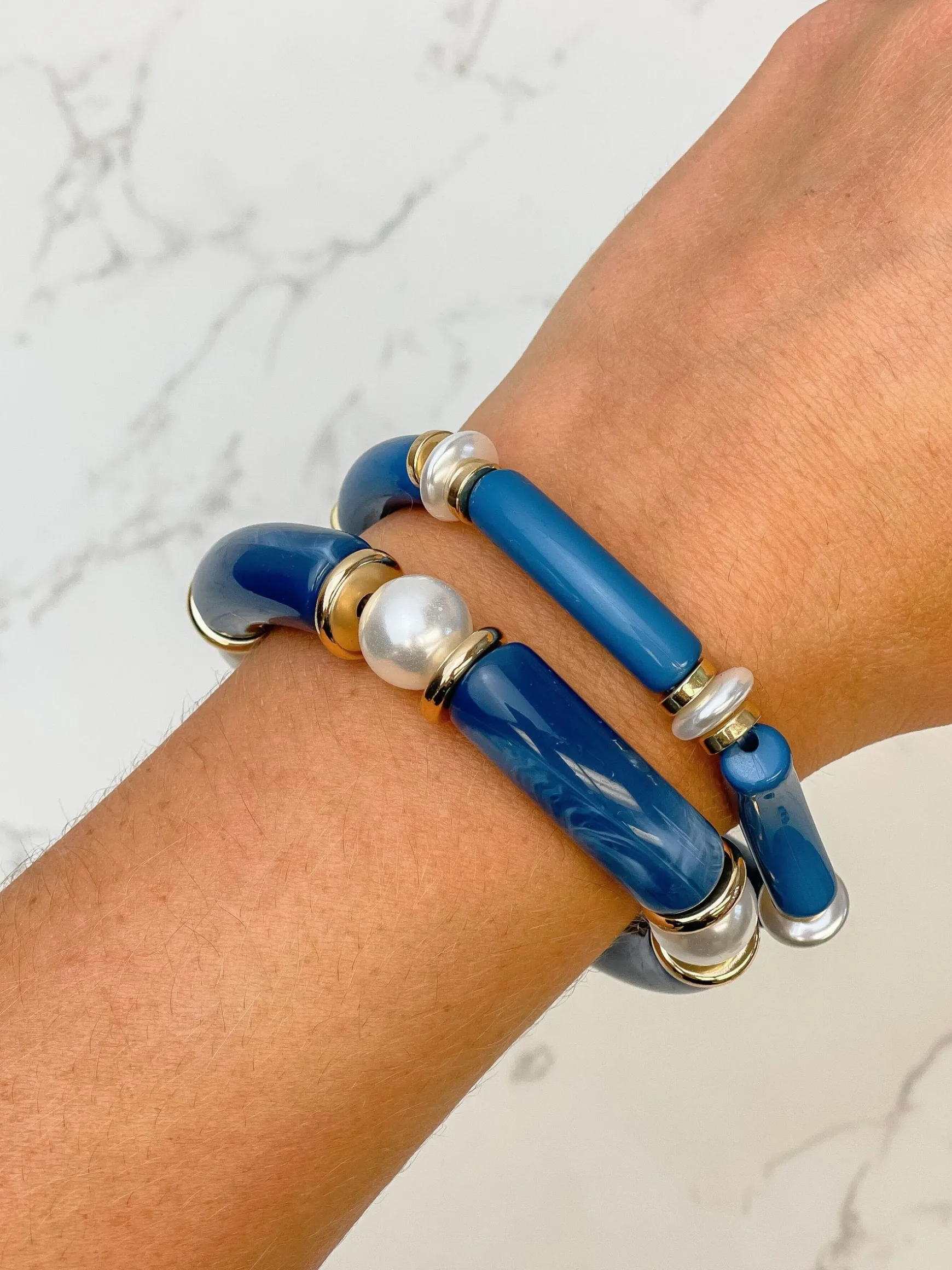 Acrylic Pearl Tube Bracelet Set – Blue