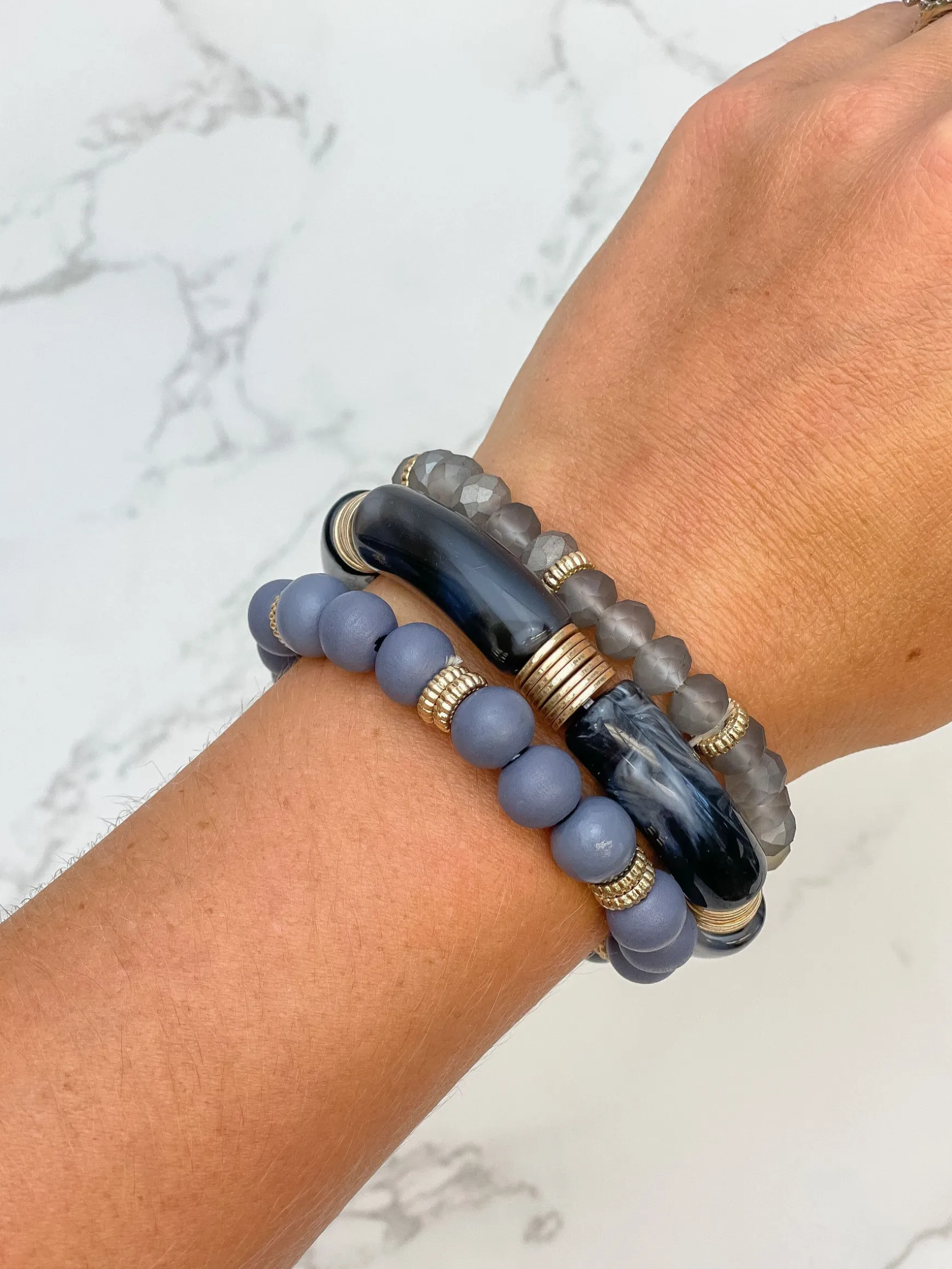 Set of 3 Stretch Bracelets – 1 Acrylic, 1 Beaded, 1 Wood Beaded
