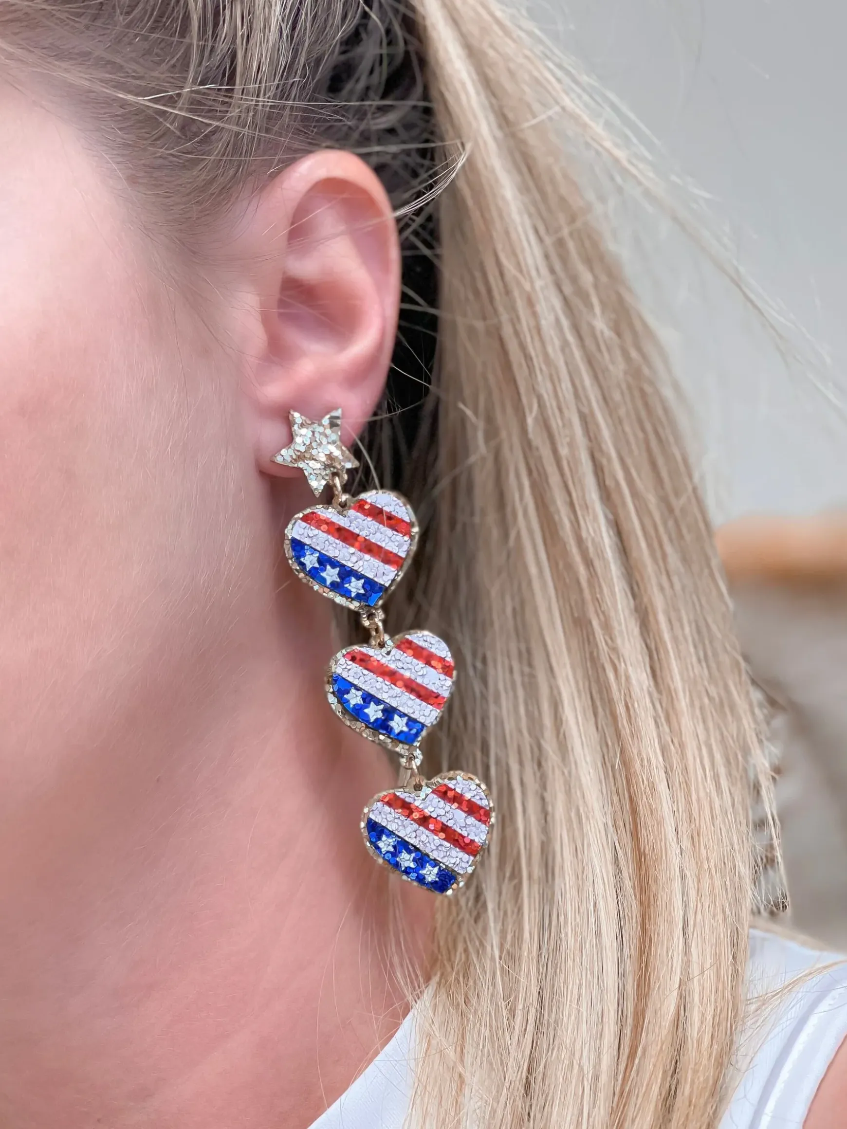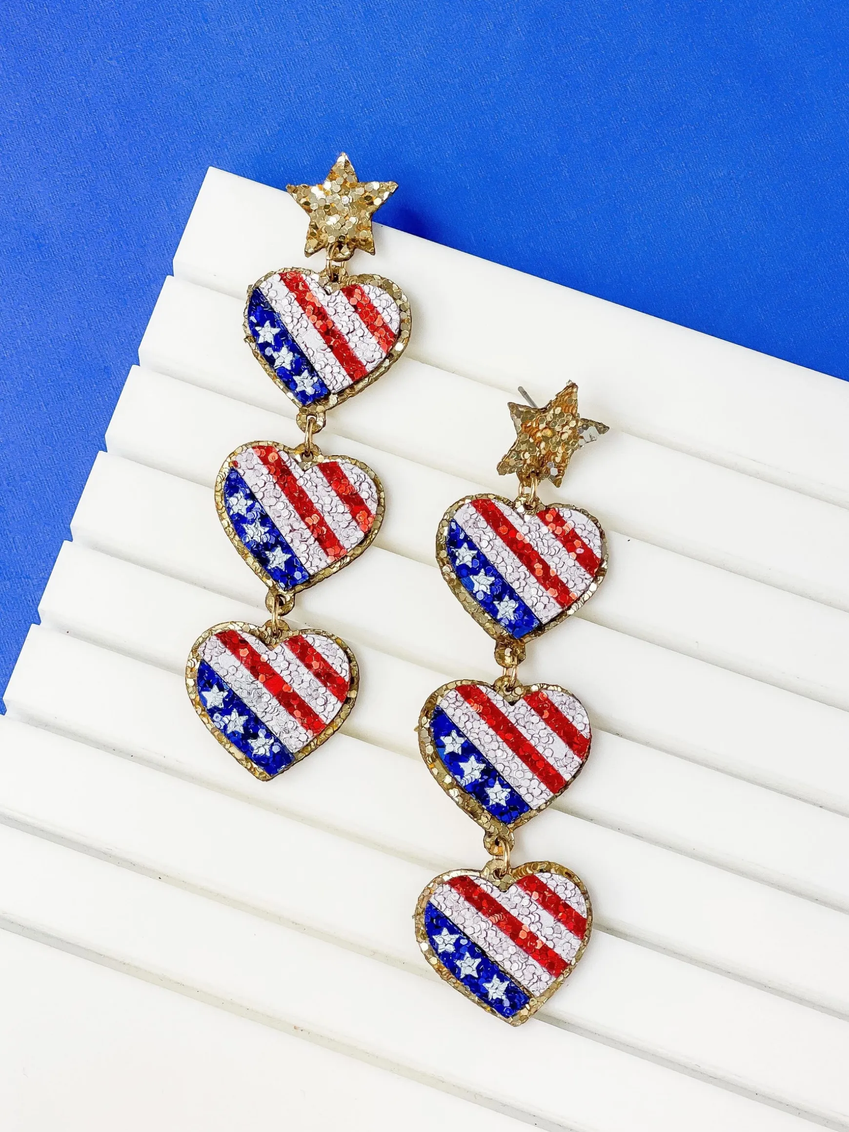 American Flag Heart Trio Dangle Earrings