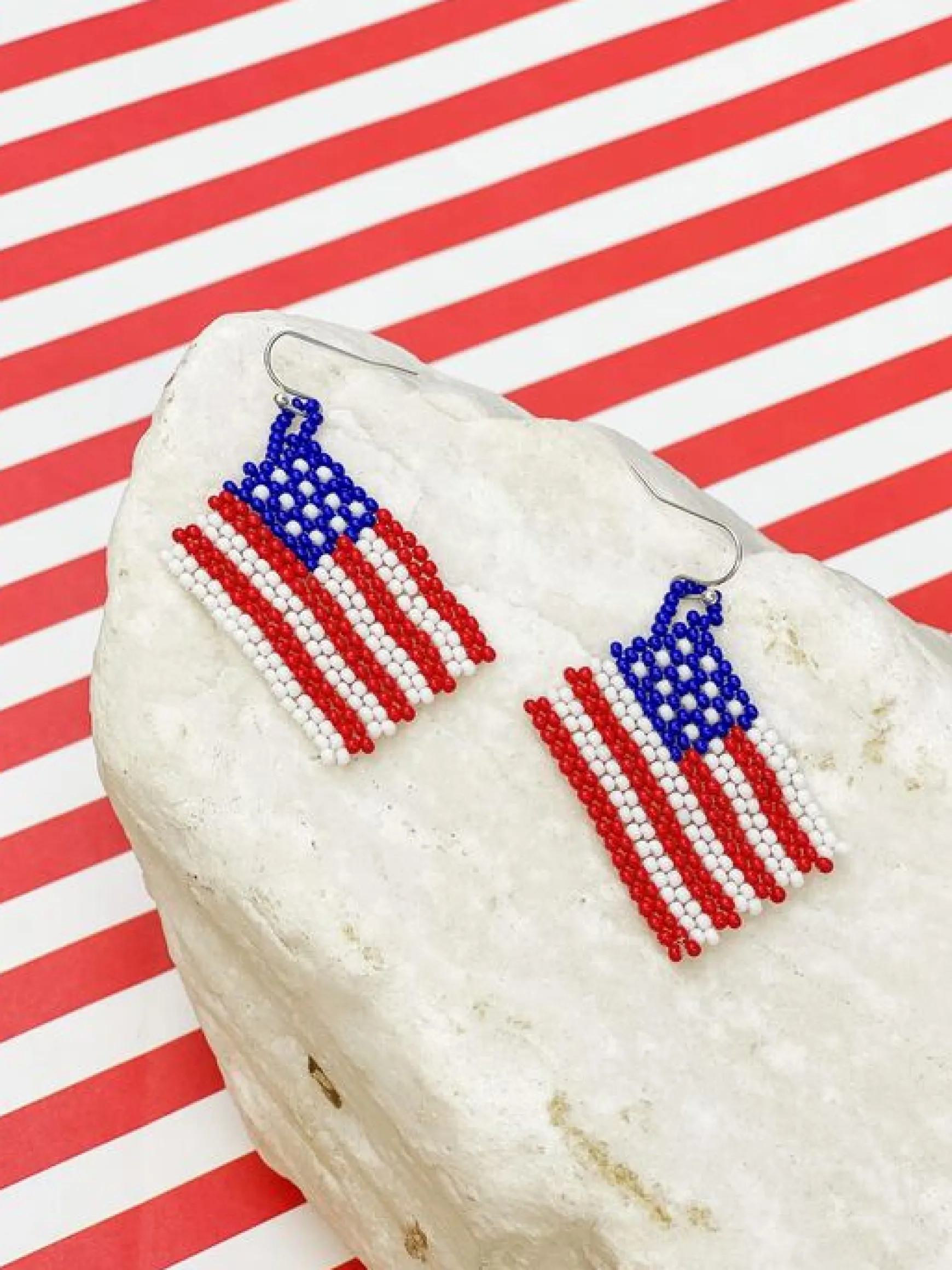 Be the first to review “American Flag Seed Bead Dangle Earrings” Cancel reply