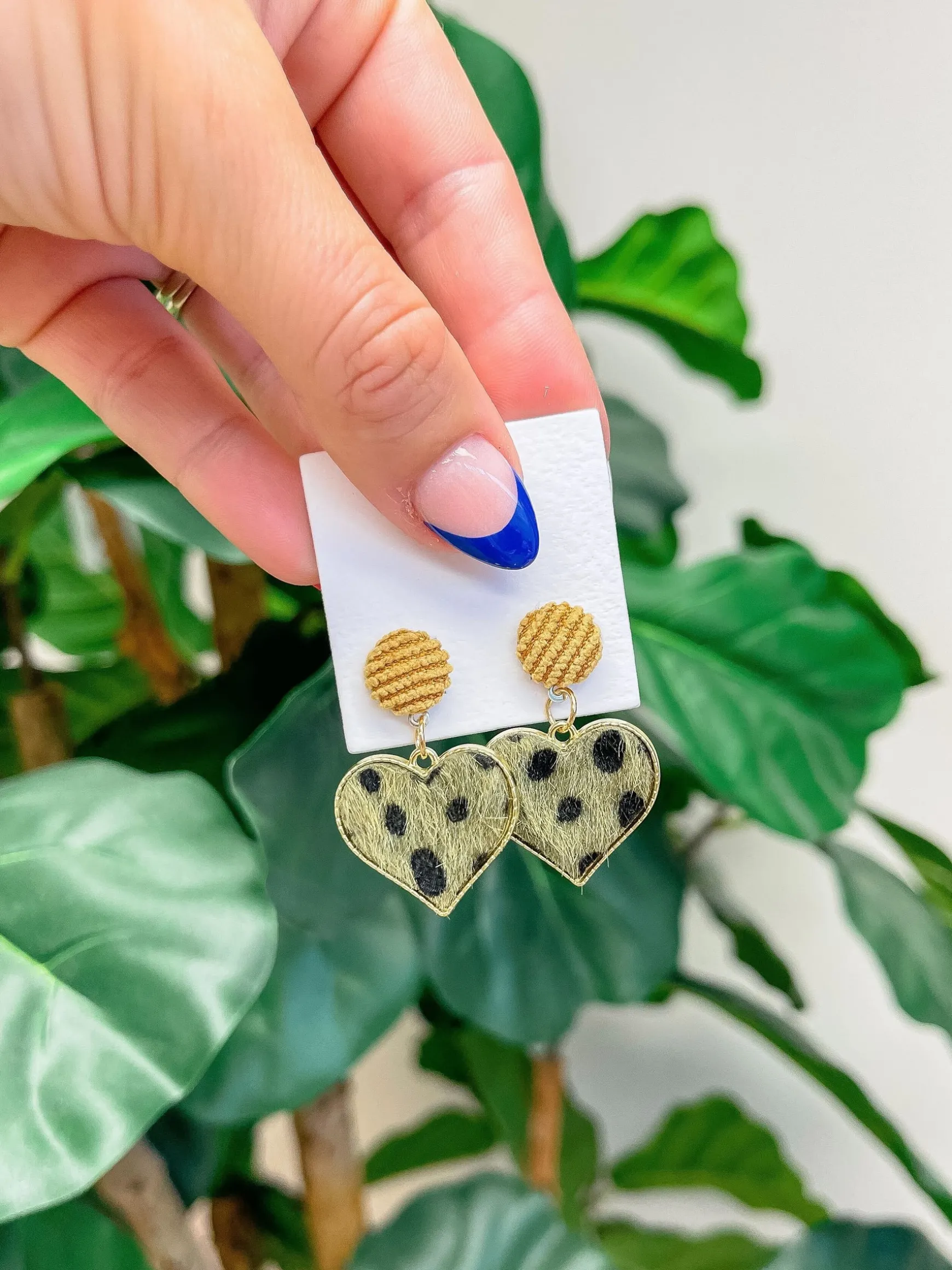 These animal print heart statement dangle earrings add a playful touch to your look – perfect for everyday wear.