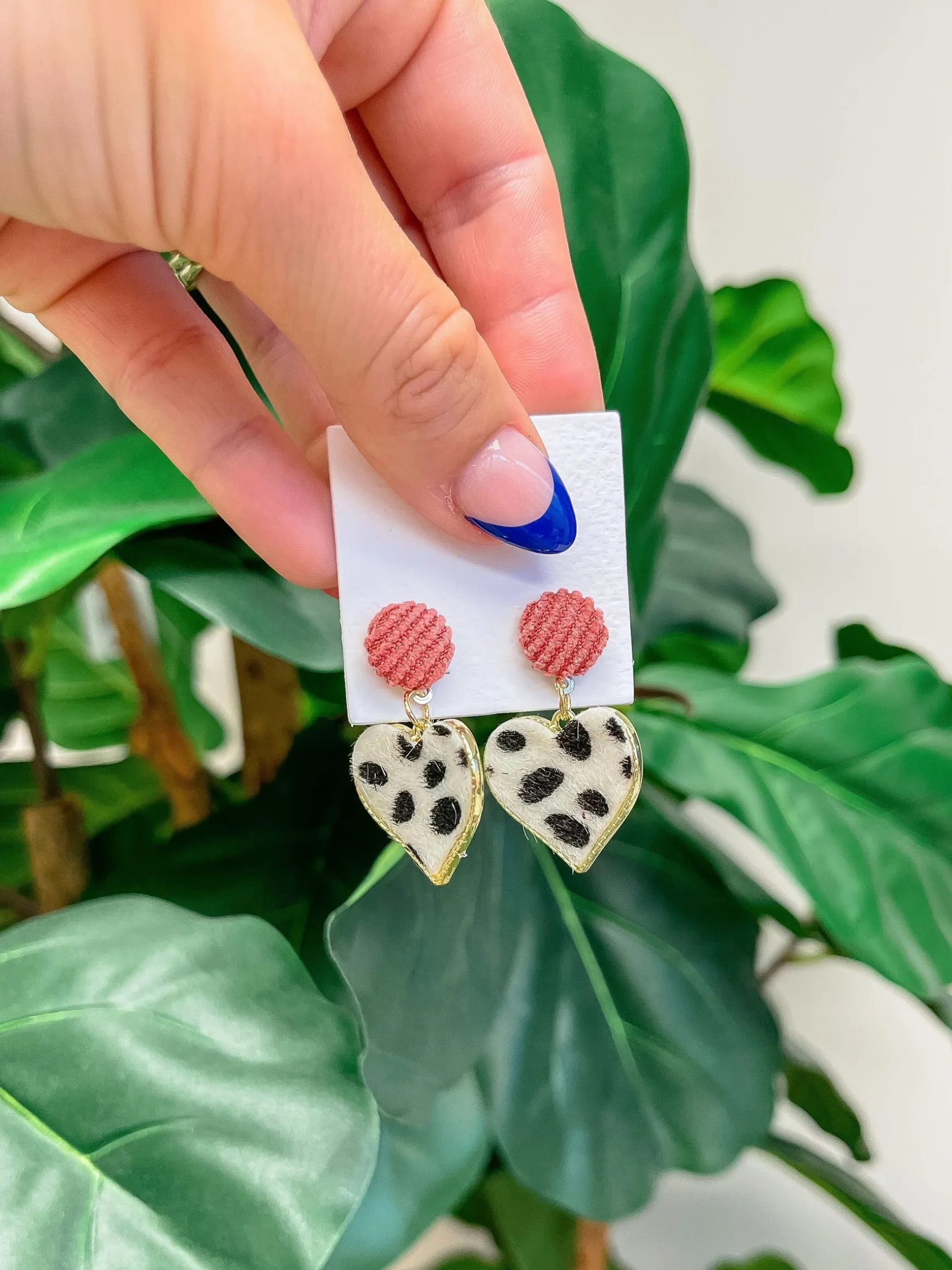 These Animal Print Heart Statement Dangle Earrings in Tan add a touch of fun to any outfit! The spotty dot dangle design is both playful and stylish. Elevate your look with these unique and trendy earrings.