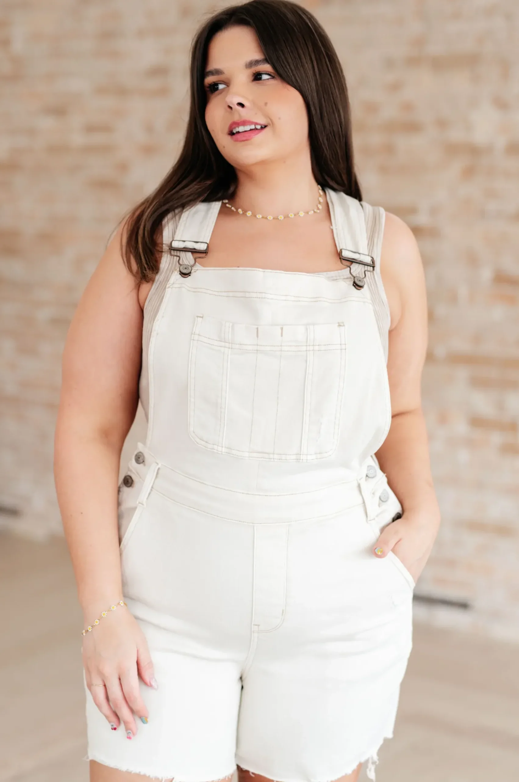 Get ready for some playful style with our Anna High Waist Garment Dyed Cutoff Shortalls from Judy Blue! These overall shorts in a trendy ecru color feature a bib front, side buttons, and a raw hem. They also come with adjustable straps for the perfect fit. Stand out with unique fashion – and pockets – in one!