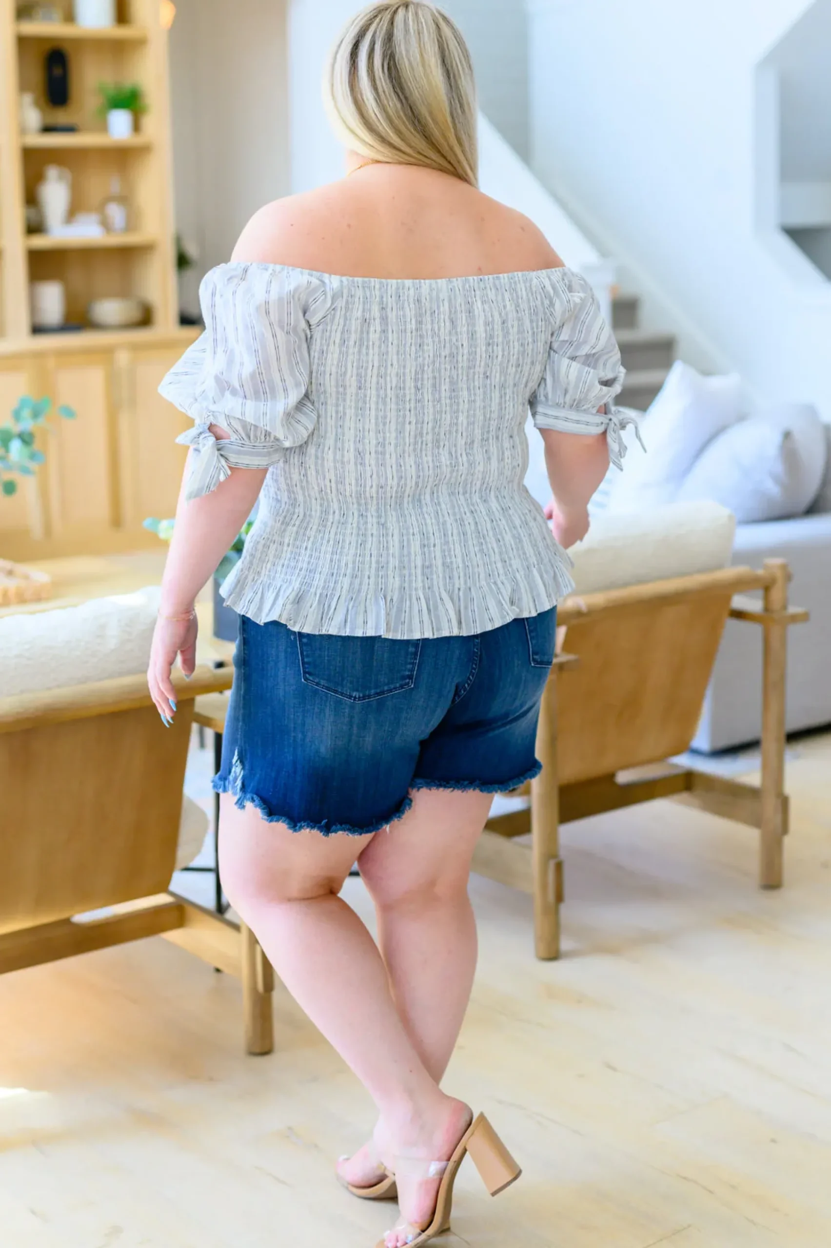 Stay ahead of the trends in our Anticipating More Smocked Blouse! Its feminine smocked bodice and chic square neckline combine with tie detail puff sleeves and retro muted ticking stripes, creating a truly stunning look. Fall in love with this stunning blouse!