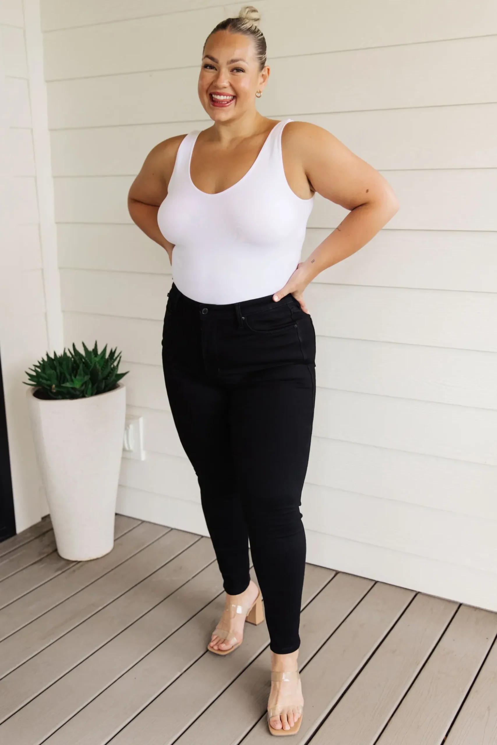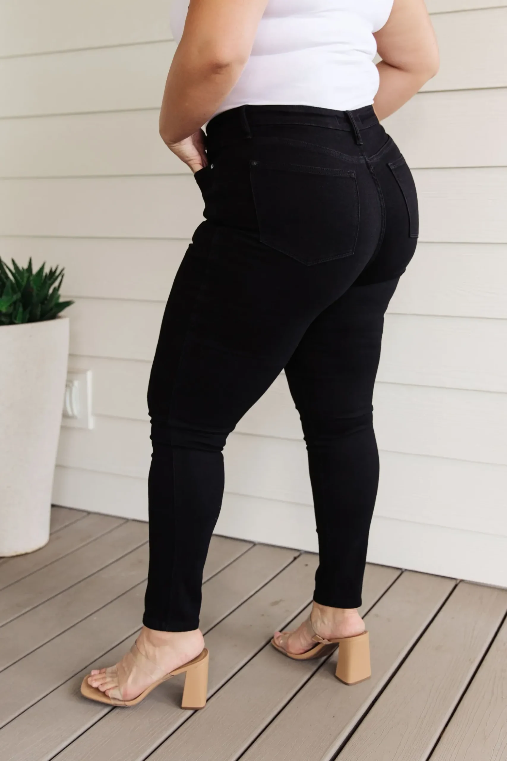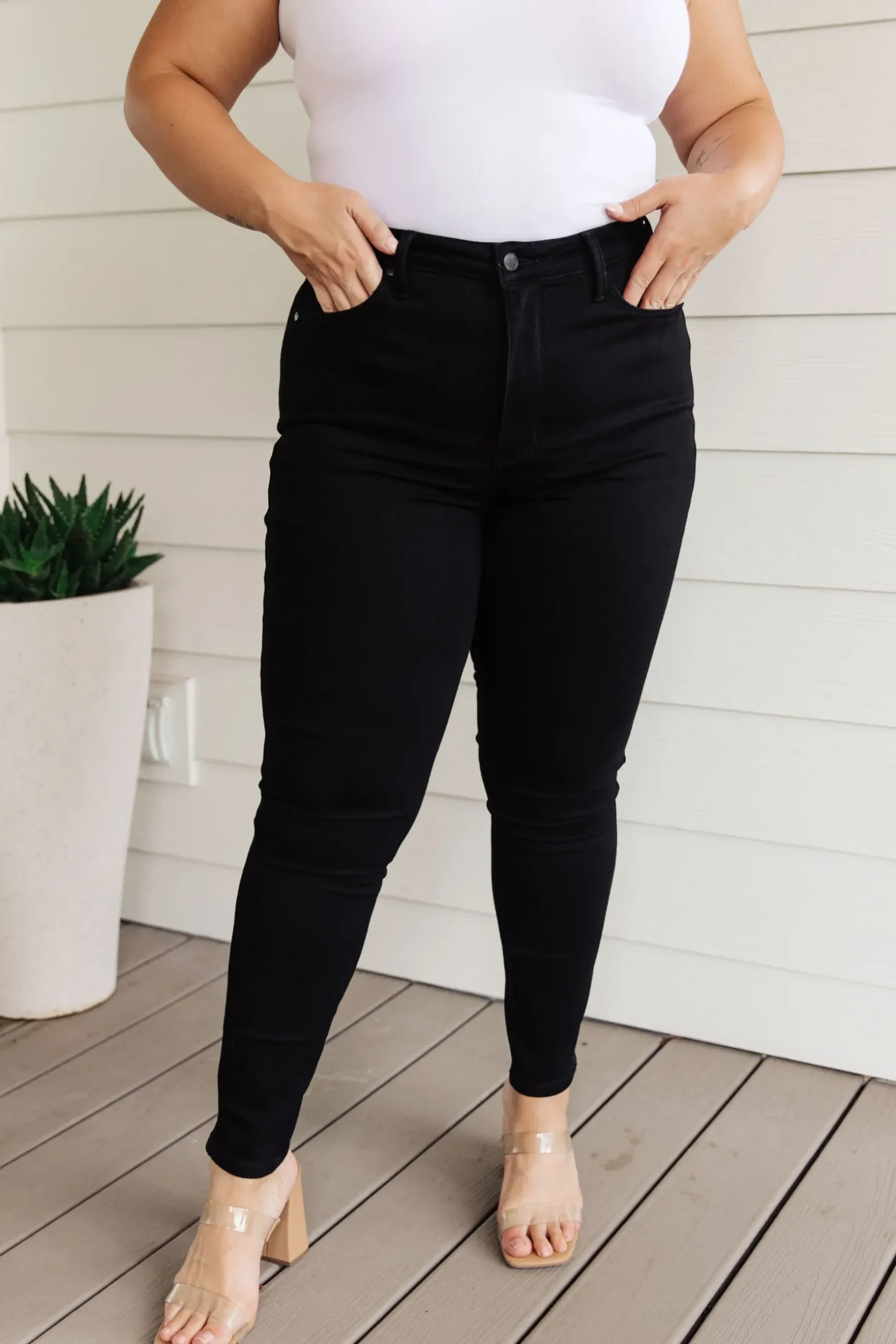 We’ve elevated the classic skinny jeans with our Audrey High Rise Control Top in rich, saturated black. Our tummy control technology provides a slimming effect that you’ll love. Matching black hardware adds a timeless, luxurious touch to these stylish denim pieces. Look great knowing you made the perfect choice.