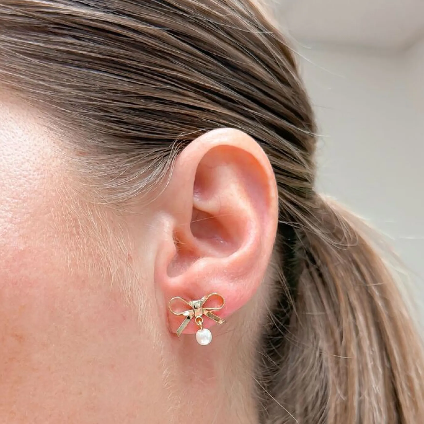Bow & Pearl Stud Earrings – Gold