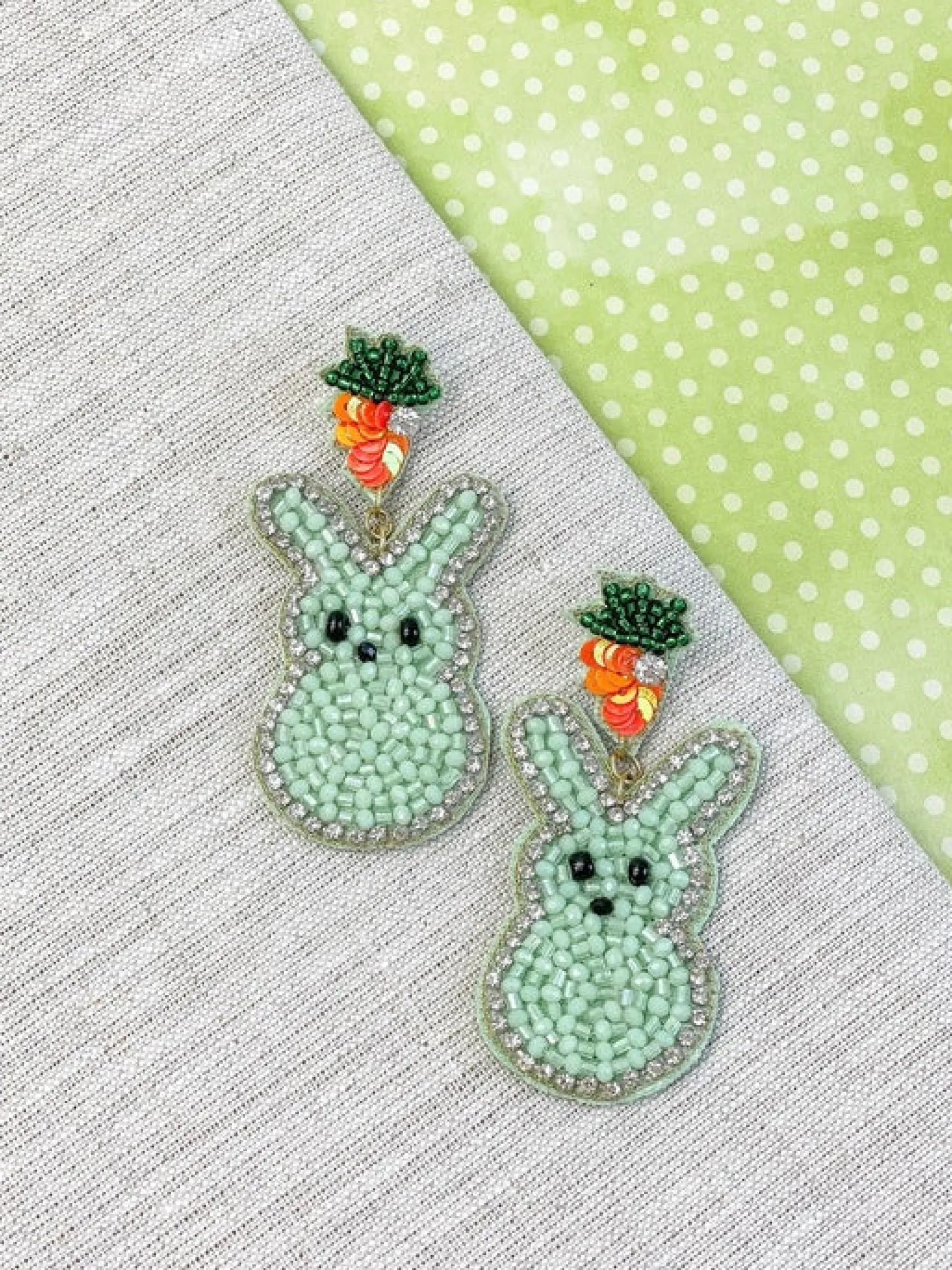 Add a cute touch to your spring wardrobe with our Bunny Beaded Dangle Earrings in mint! These earrings feature a charming bunny dangle that adds a playful element to any outfit.