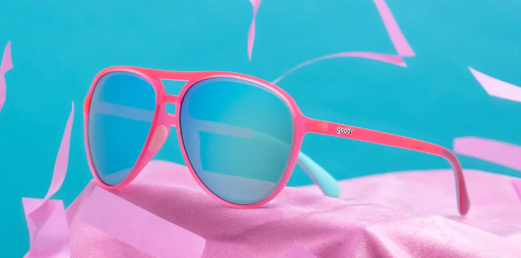 Our flam-favorite, Flamingos on a Booze Cruise, meets our Mach Gs in these NEW pink-a-licious aviator frames!