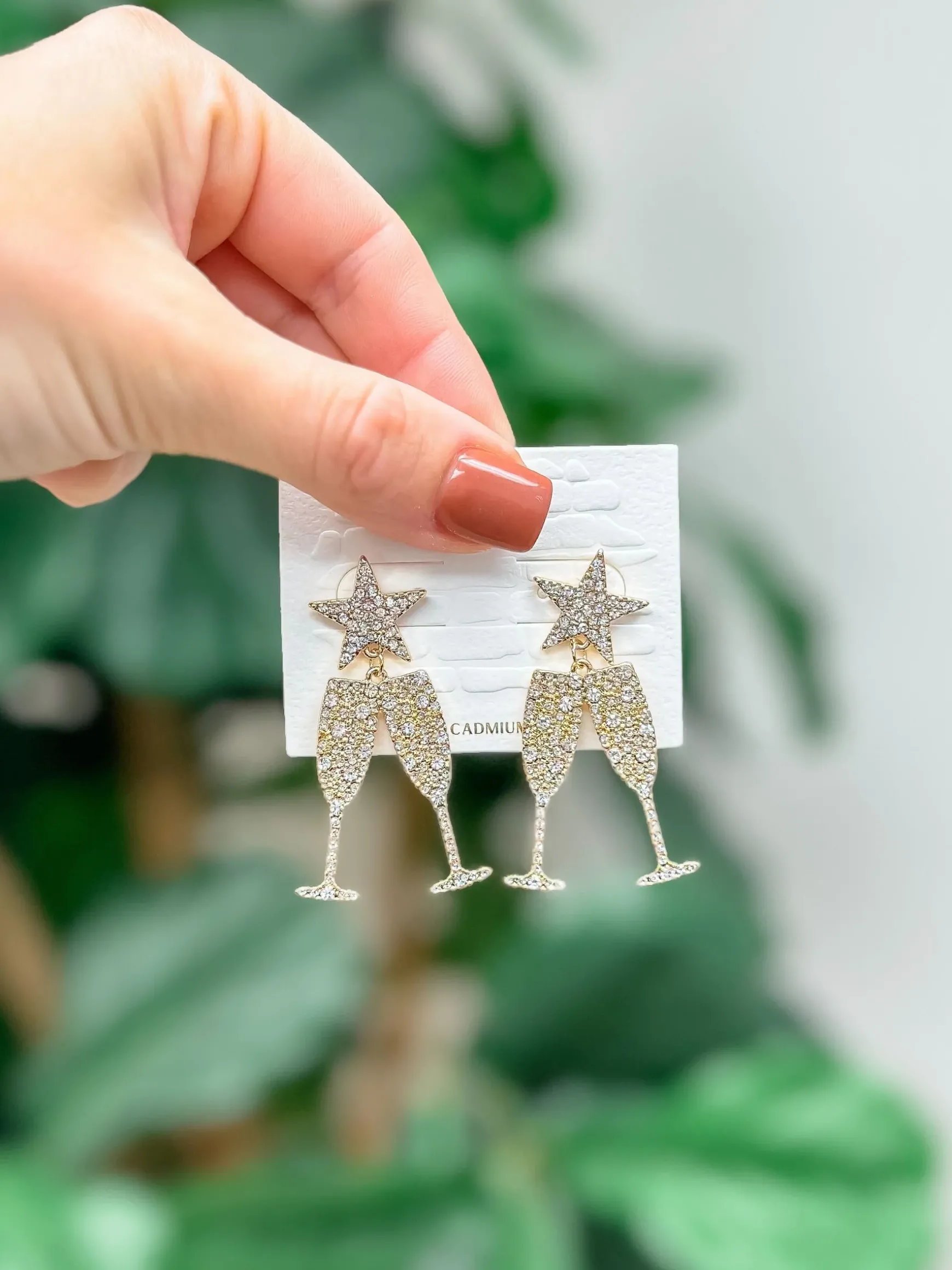 These Cheers Rhinestone Dangle Earrings are the perfect accessory for celebrating special occasions.