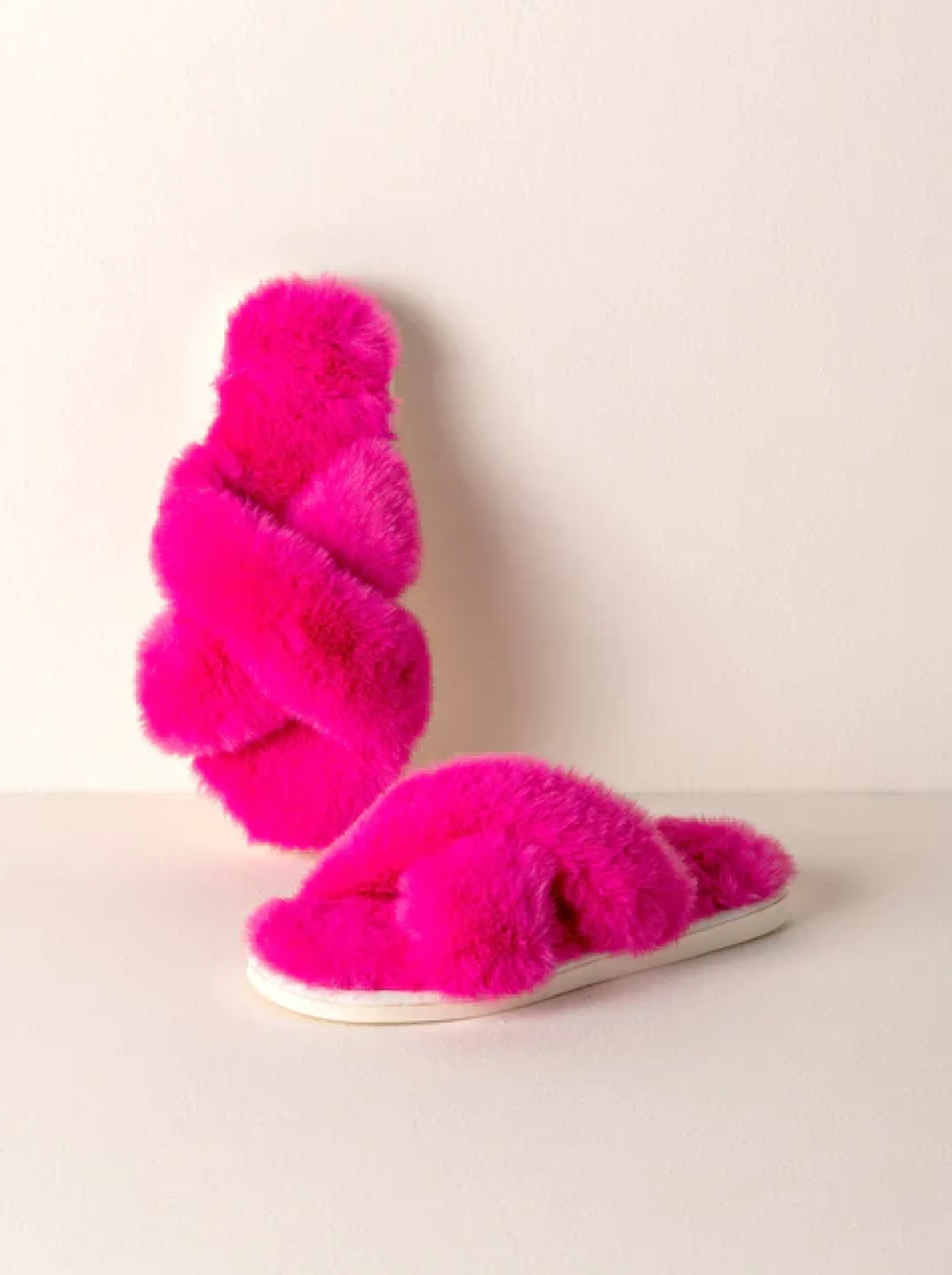 Christina Fuzzy Criss-Cross Slippers – Magenta
