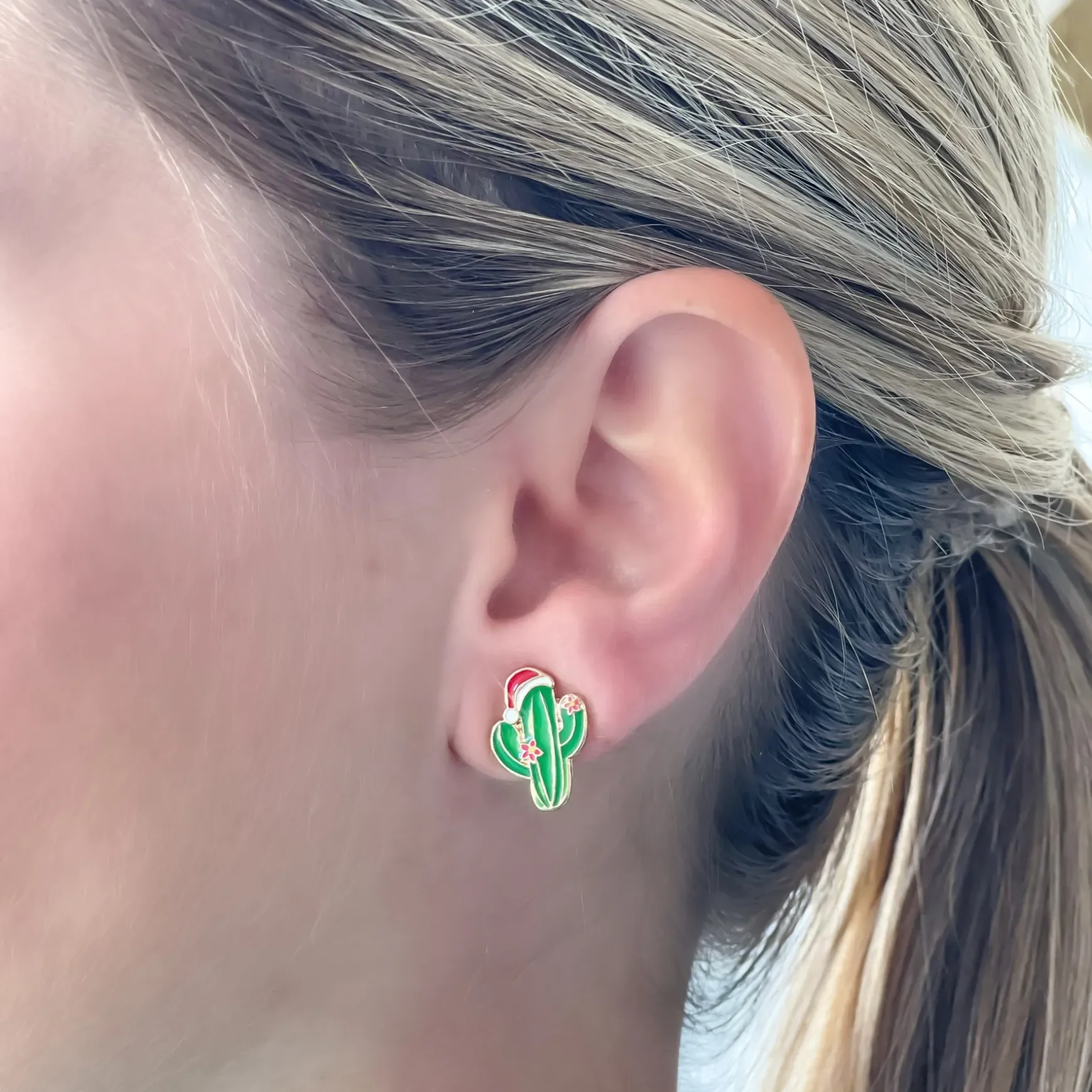 Christmas Cactus Signature Enamel Stud Earrings