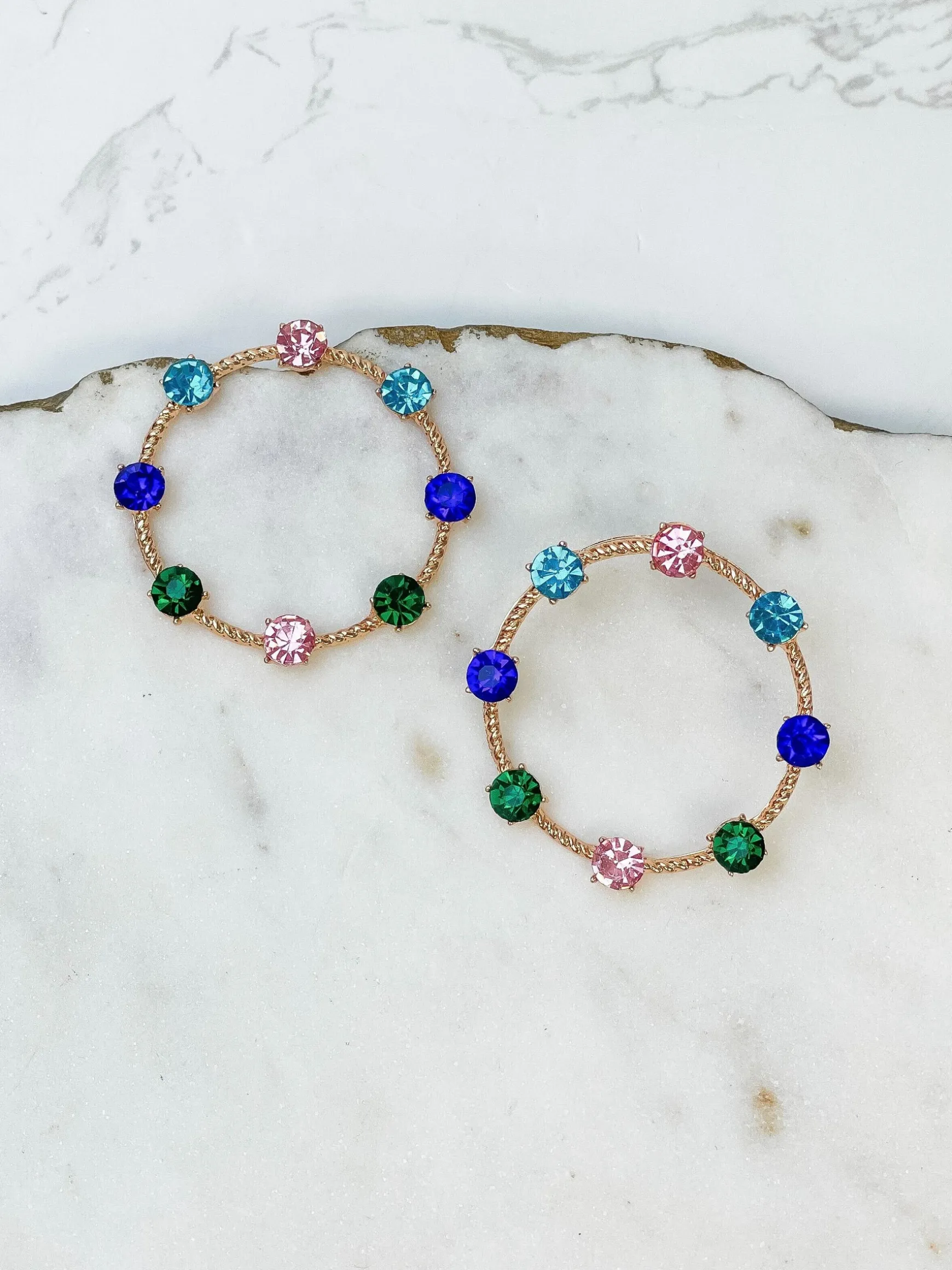 These bold, sparkling stud earrings will make a statement with any outfit. The multi gem design will add eye-catching sparkle for an effortlessly elegant look!