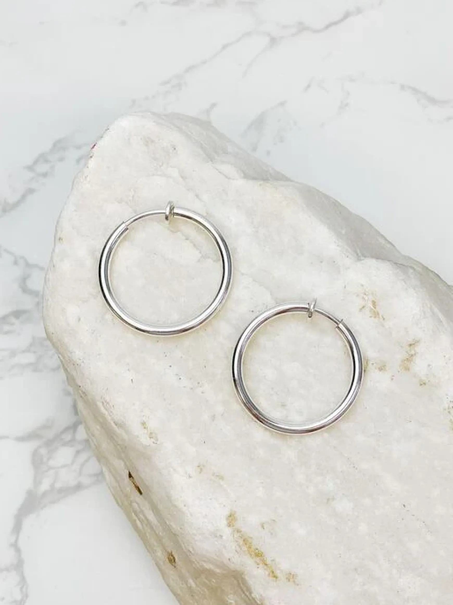 Classic Clip on Hoop Earrings - Silver
