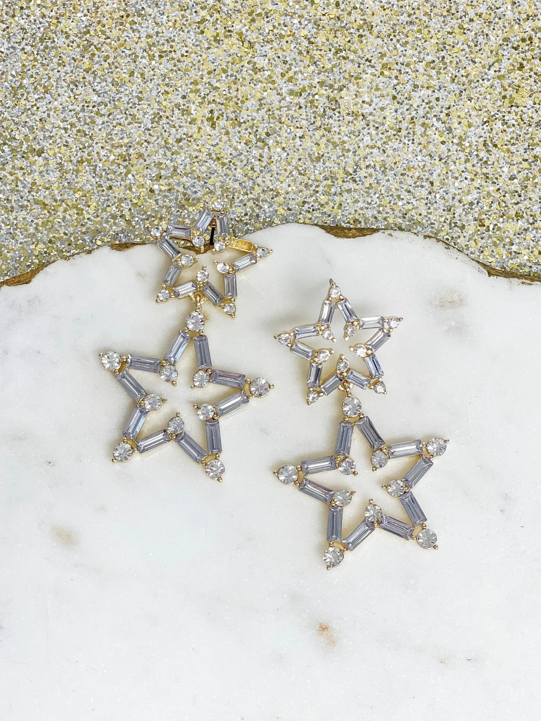These Clear Crystal Winter Star Duo Dangle Earrings feature two classic crystal dangles to bring an elegant and timeless look your style.
