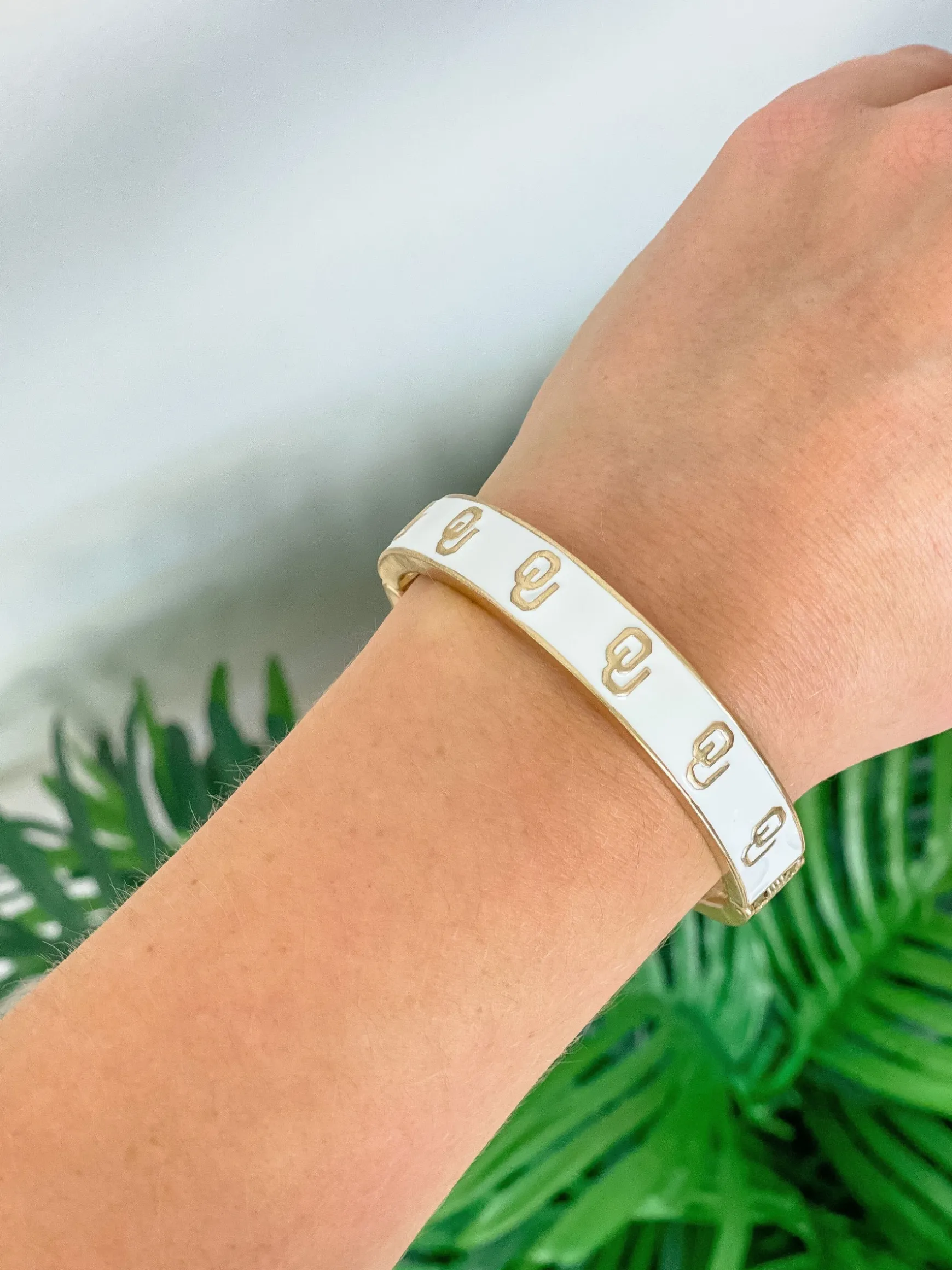 Collegiate Gold Football Hinged Bangle Bracelet – Oklahoma White