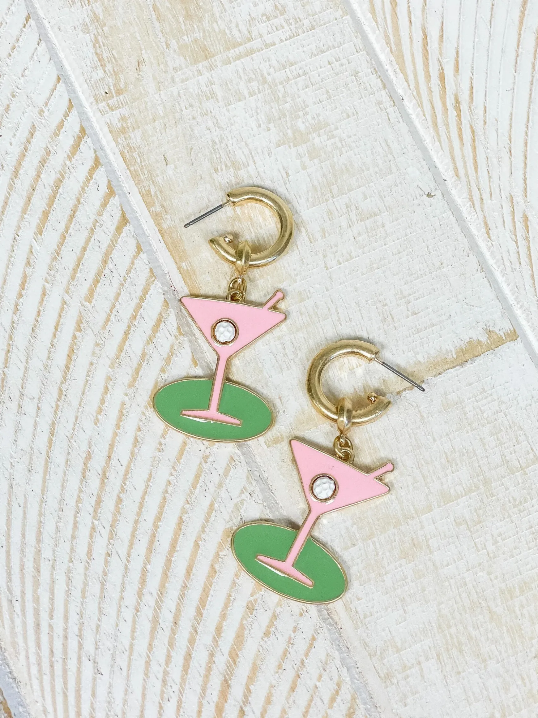Be the first to review “Country Club Martini Drop Hoop Earrings” Cancel reply