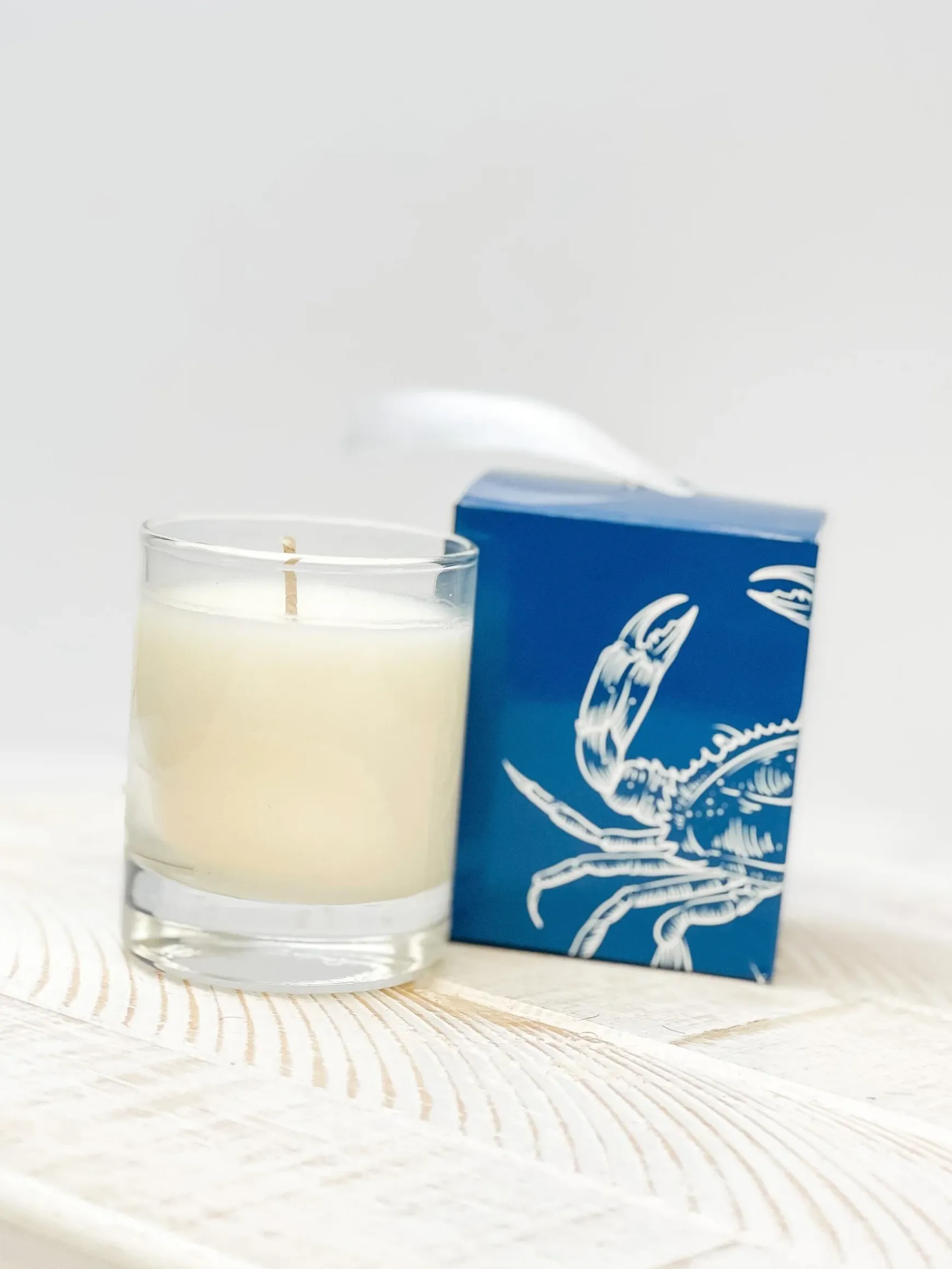2 oz clear glass candle featuring Sea Salt + Cypress scent.