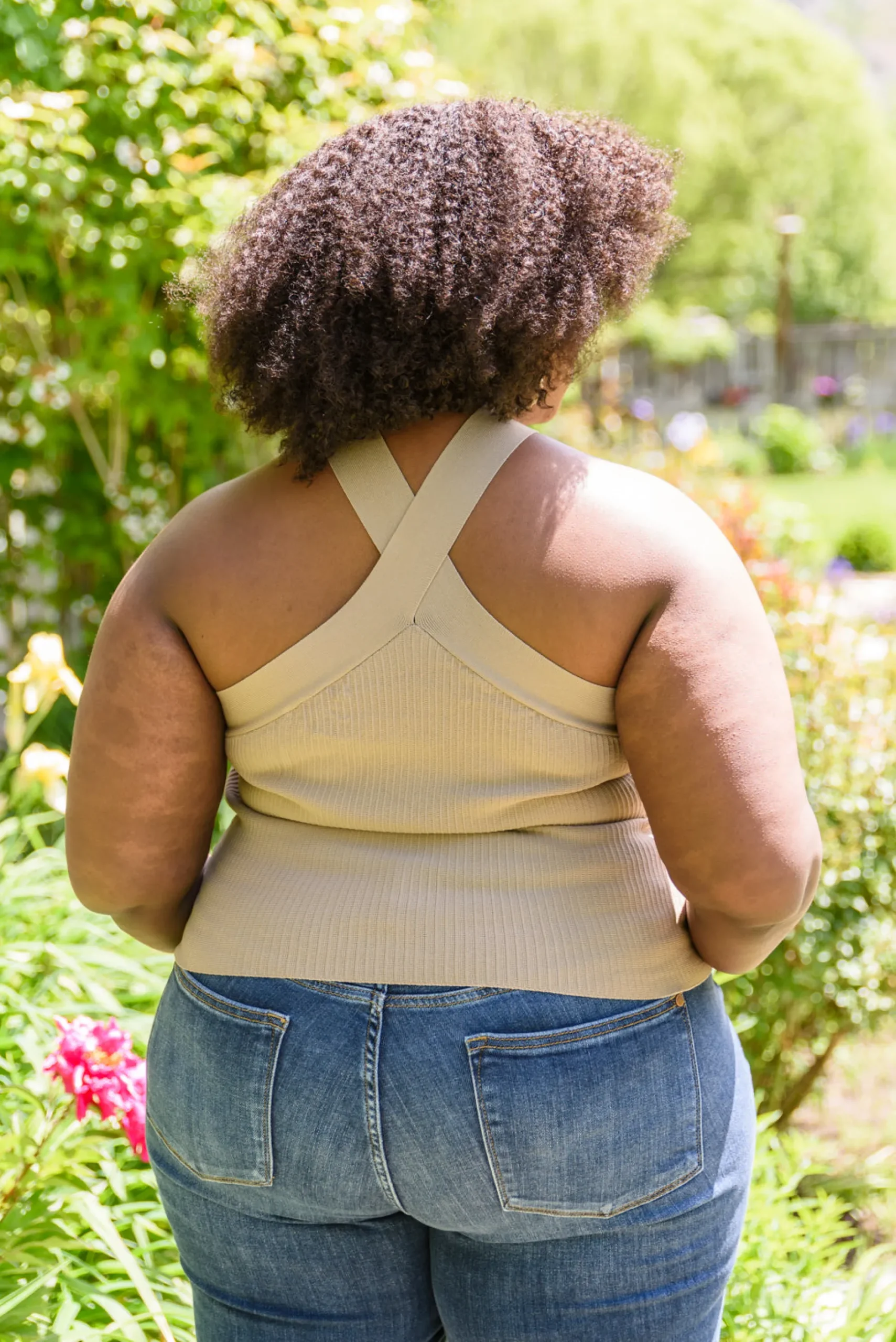The Crossways Halter Top can elevate your outfit with its simple yet stunning details! Featuring a criss-cross halter style neckline, stretchy thick rib knit, and body-hugging silhouette. Pair this cute top with simple denim and heels for a modern and on-trend look!