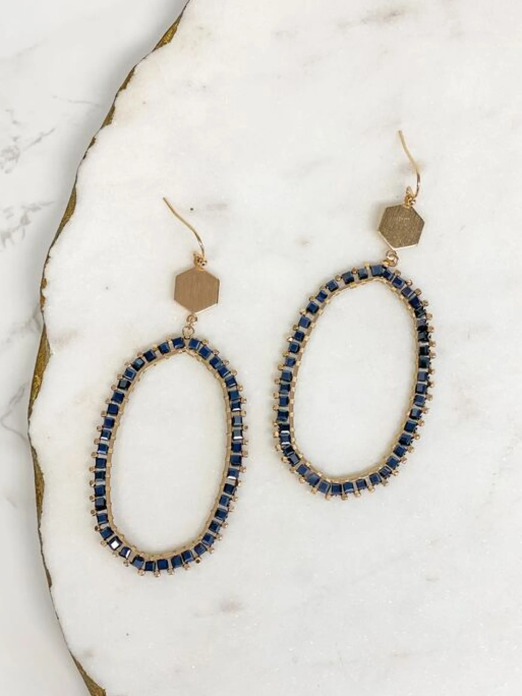 Crystal Beaded Studded Drop Earrings – Hematite