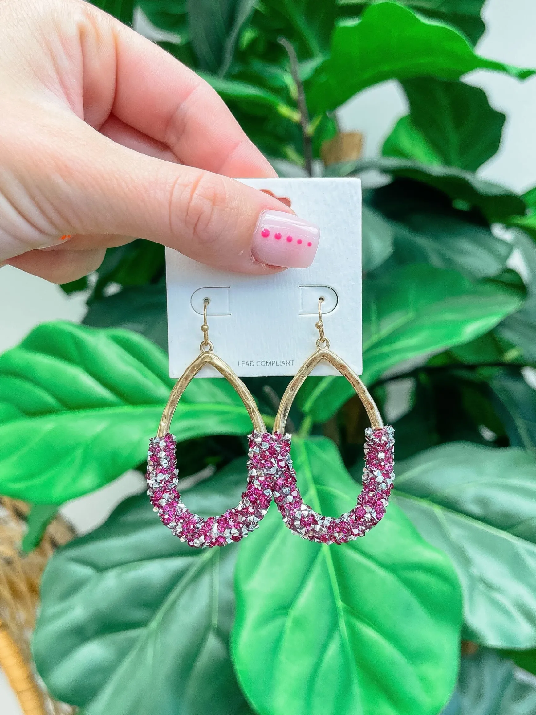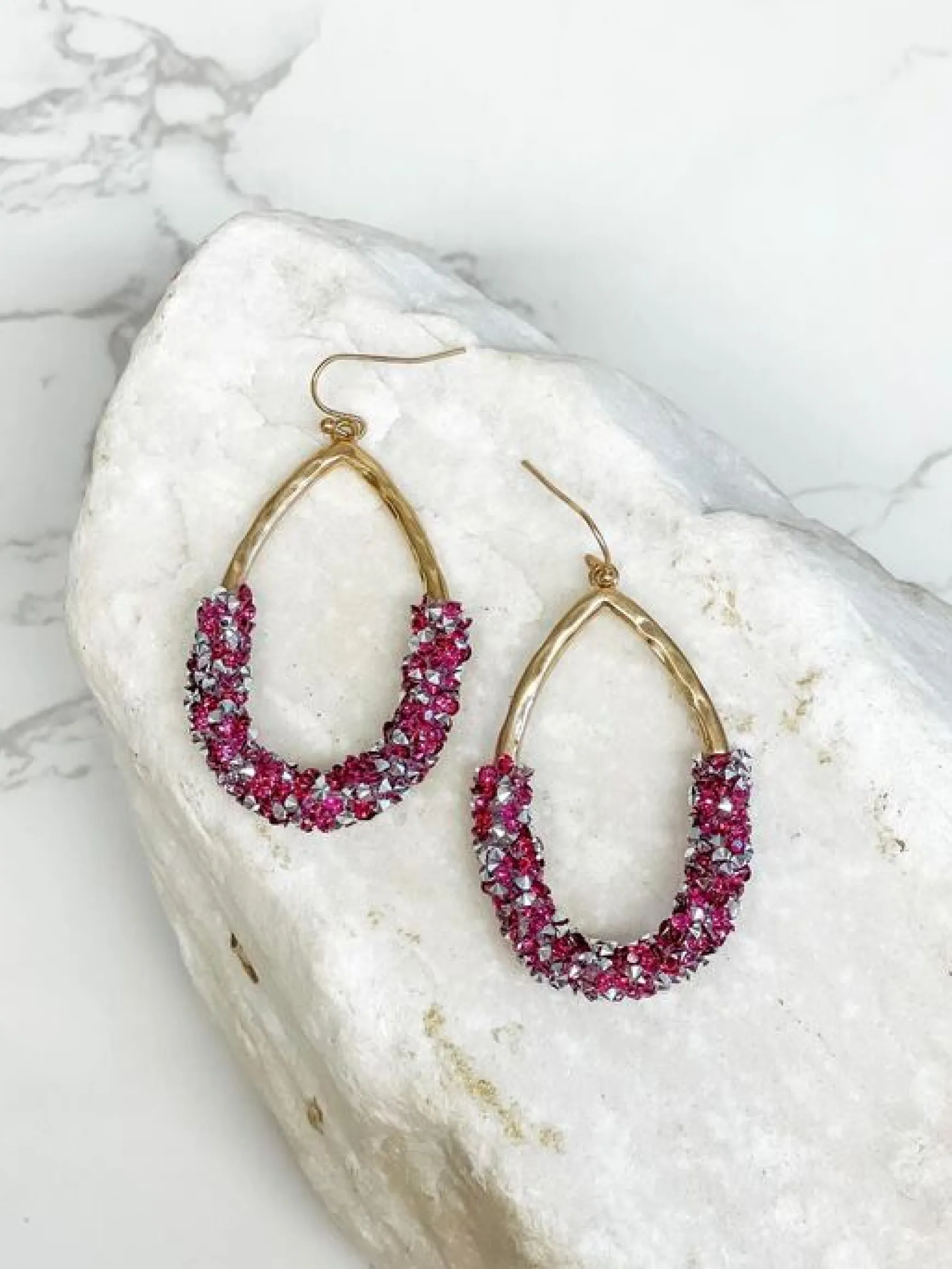 Crystal Encrusted Gold Teardrop Dangle Earrings – Fuchsia