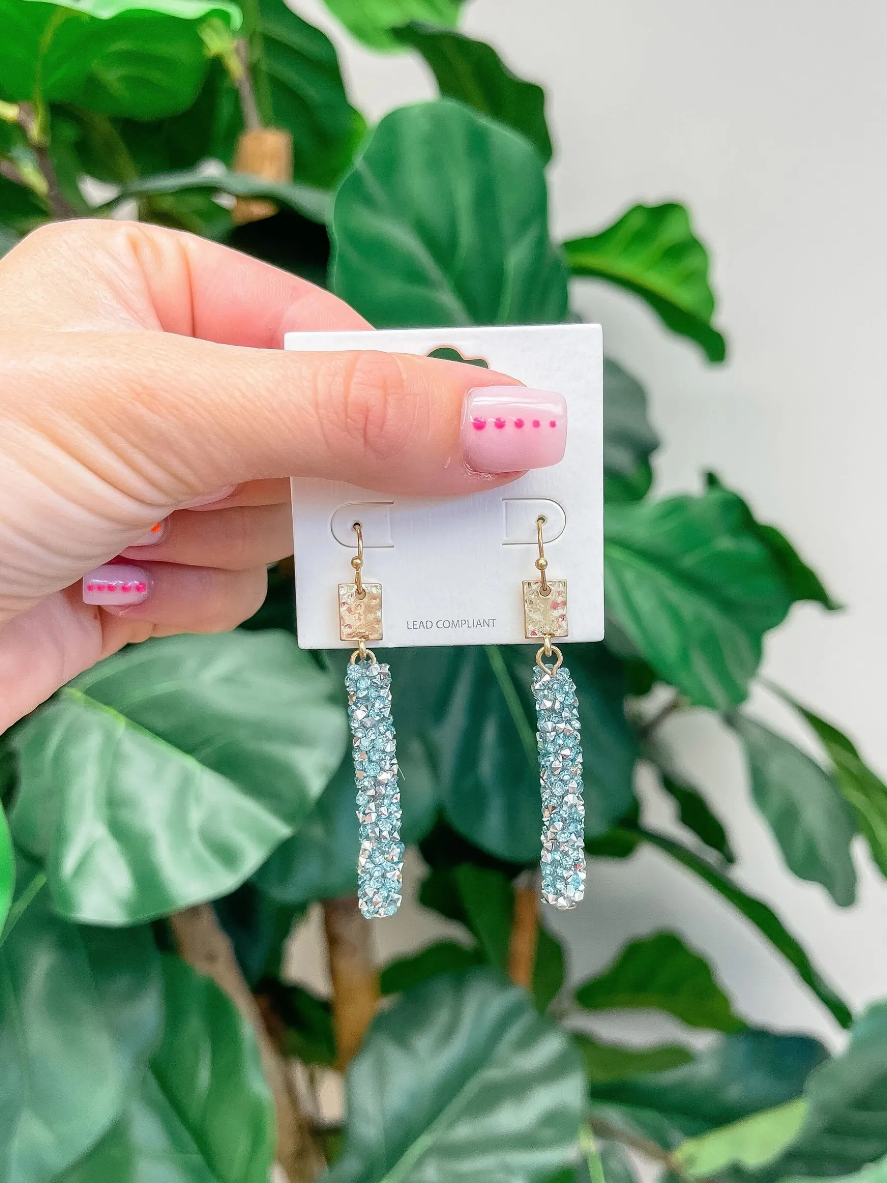 Crystal Encrusted Straight Dangle Earrings – Blue