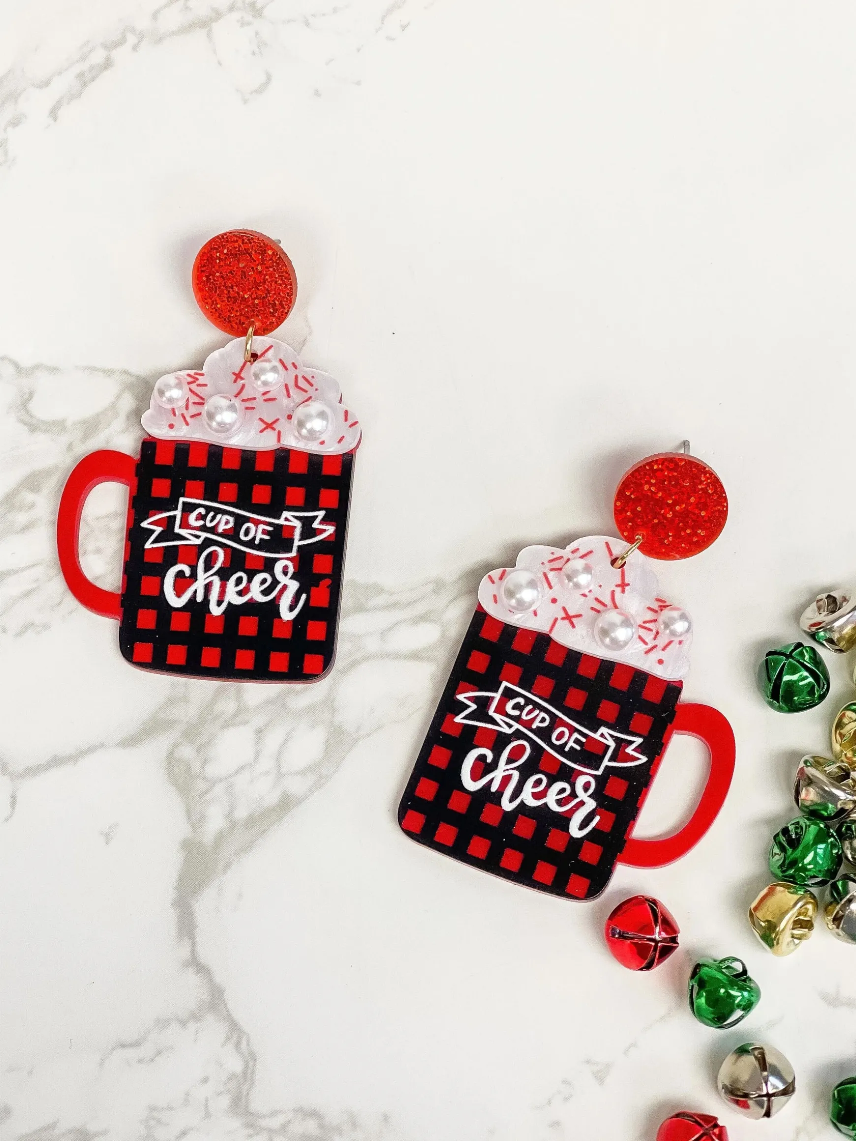 'Cup of Cheer' Buffalo Check Dangle Earrings