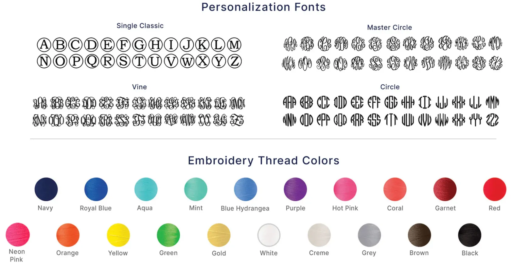 - Font & thread guide can be found in secondary photos.