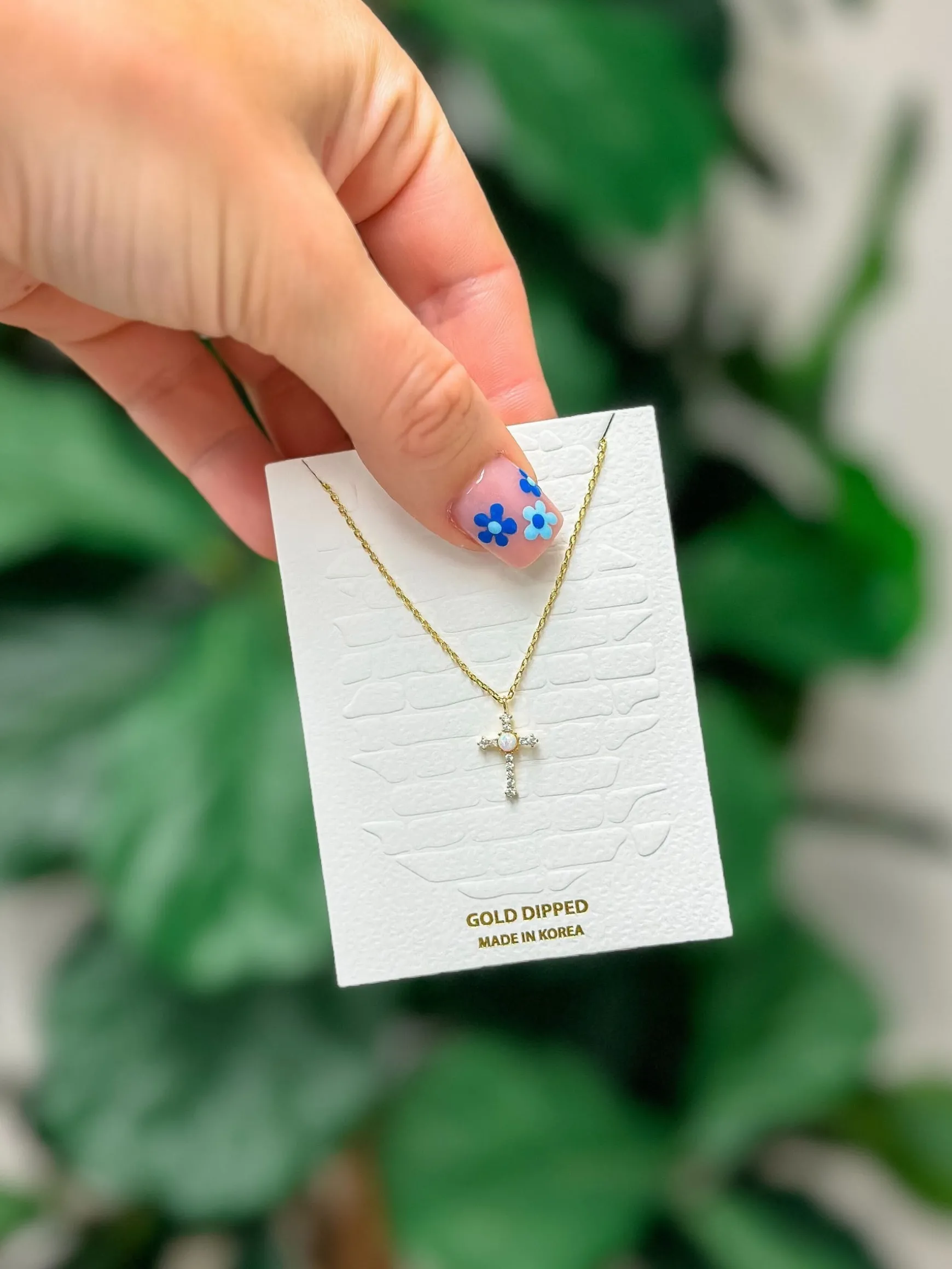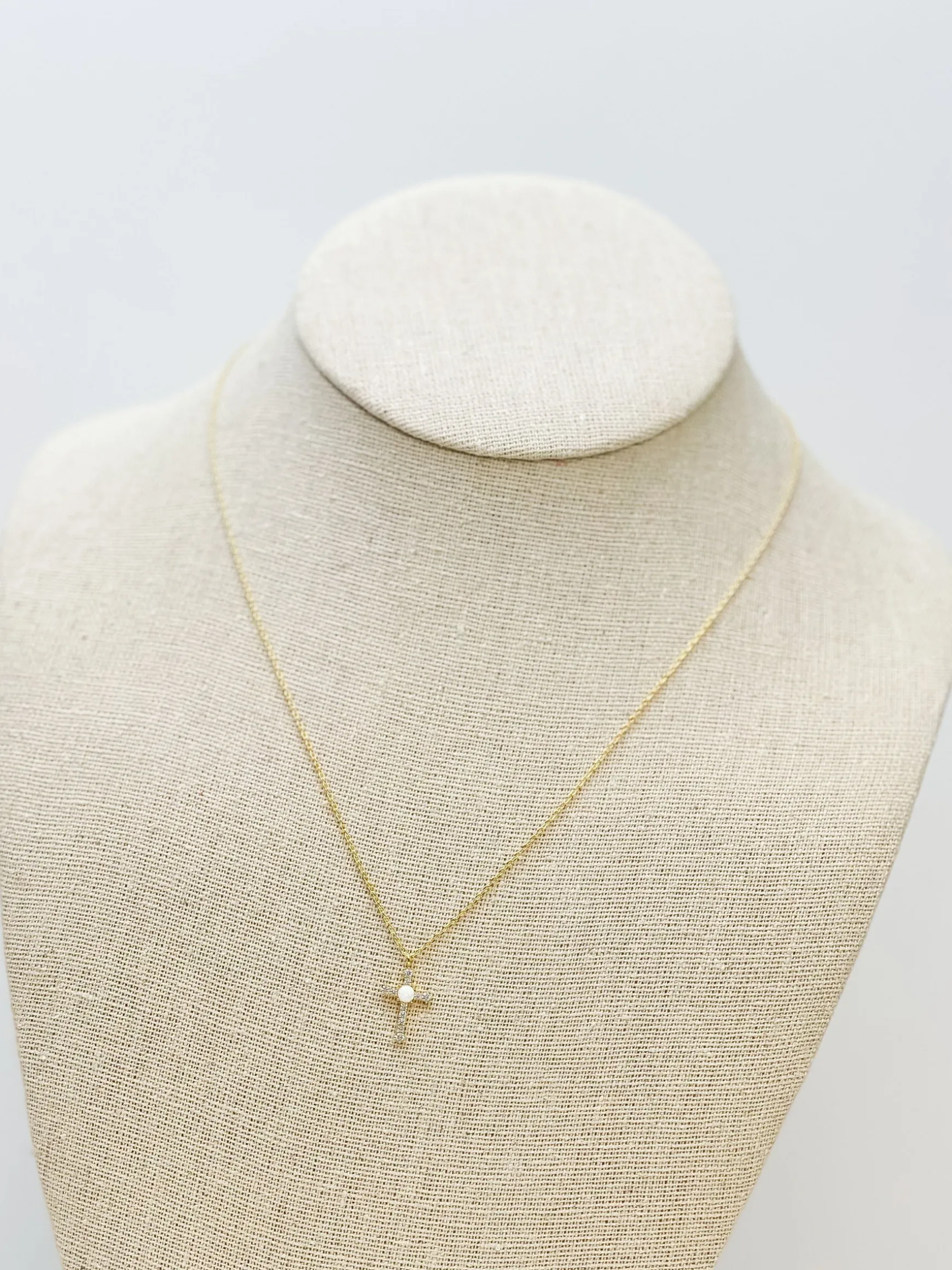 Enhance your style with this Dainty Gold Crystal Cross Pendant Necklace!
