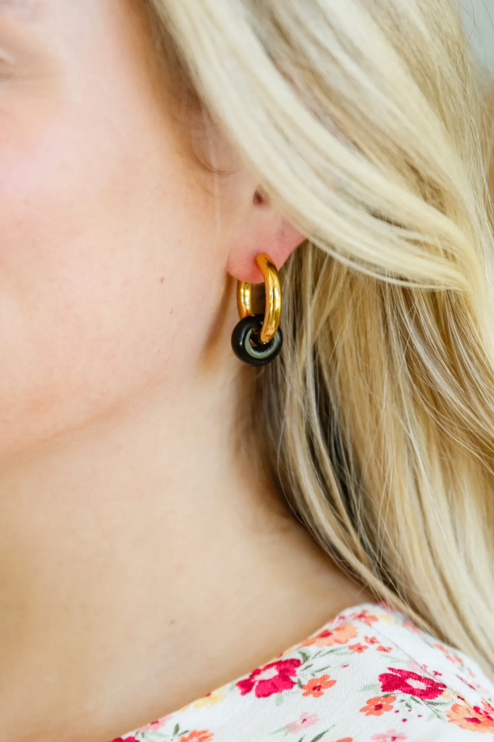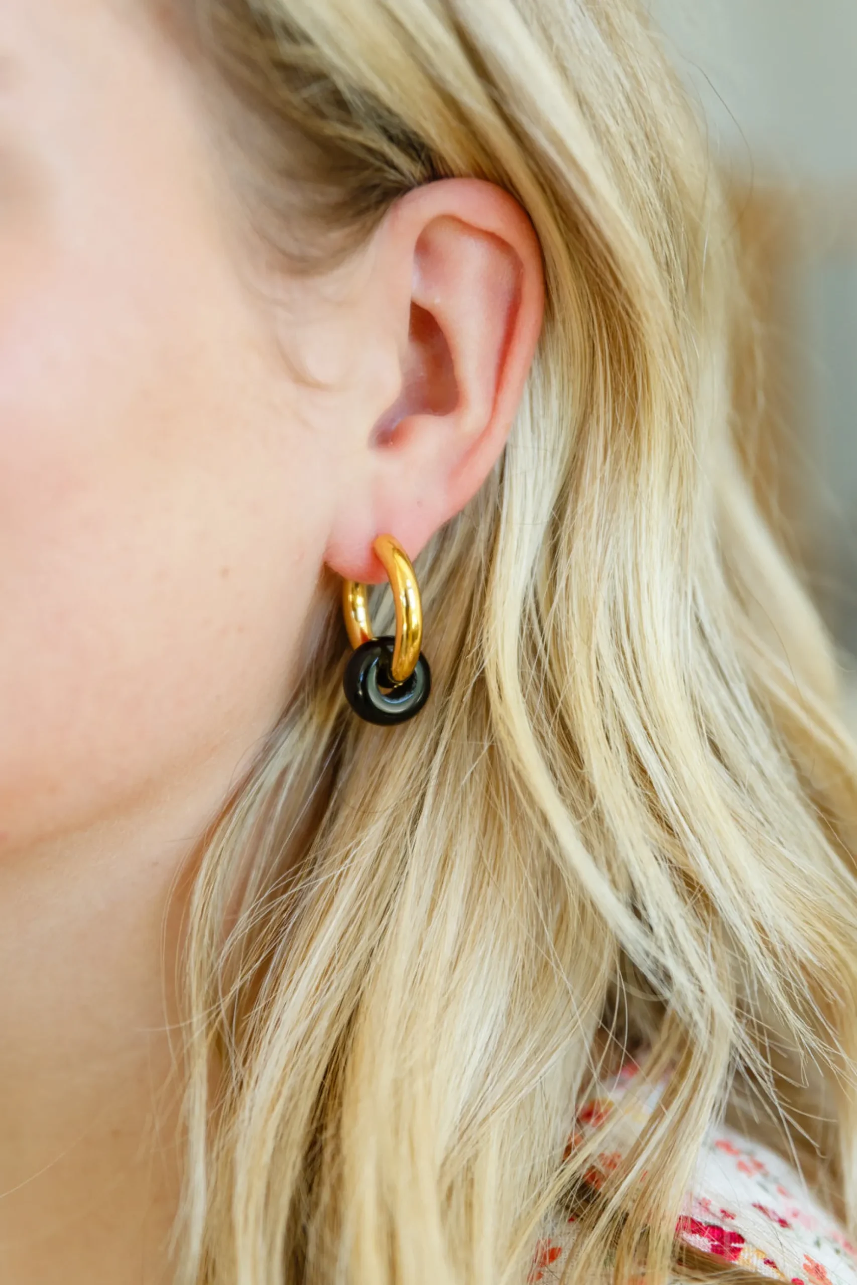 Make a fashion statement with these Dark Drops Beaded Huggie Earrings! Crafted with 18K gold, these oversized huggie style earrings offer a unique twist with a free-moving, black stone beaded pendent. Elevate your look with these luxurious and eye-catching earrings!
