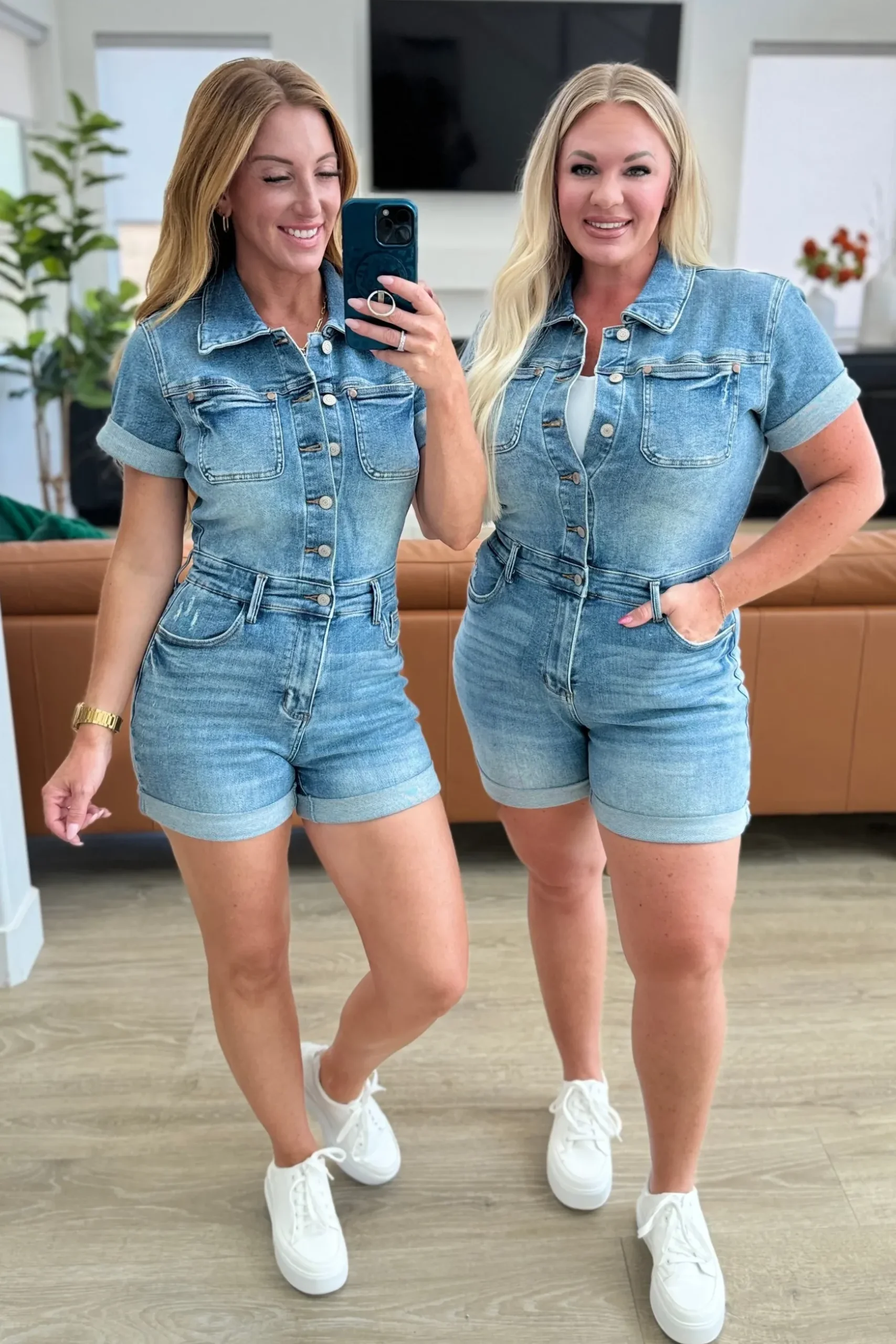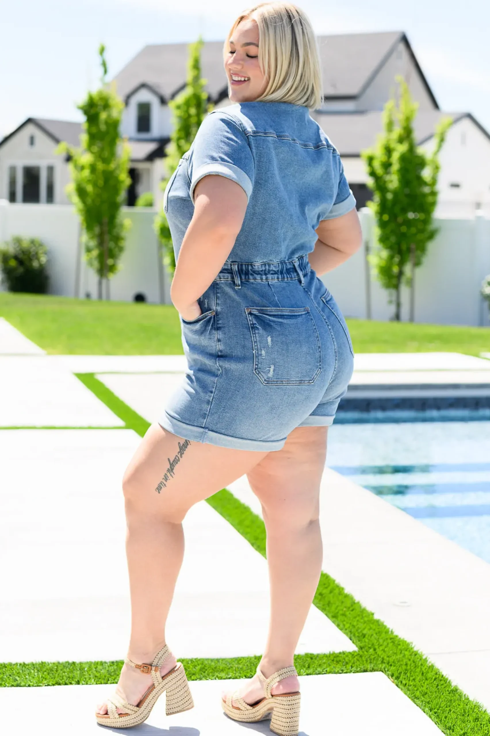 Unleash your playful side with the Delia High Rise Short Sleeve Romper. This denim romper features a button front and cuffed details for an effortlessly cute look. The medium wash and 4-way stretch provide comfort and style, while the non-distressed design keeps it classy. Perfect for a fun day out in the sun!