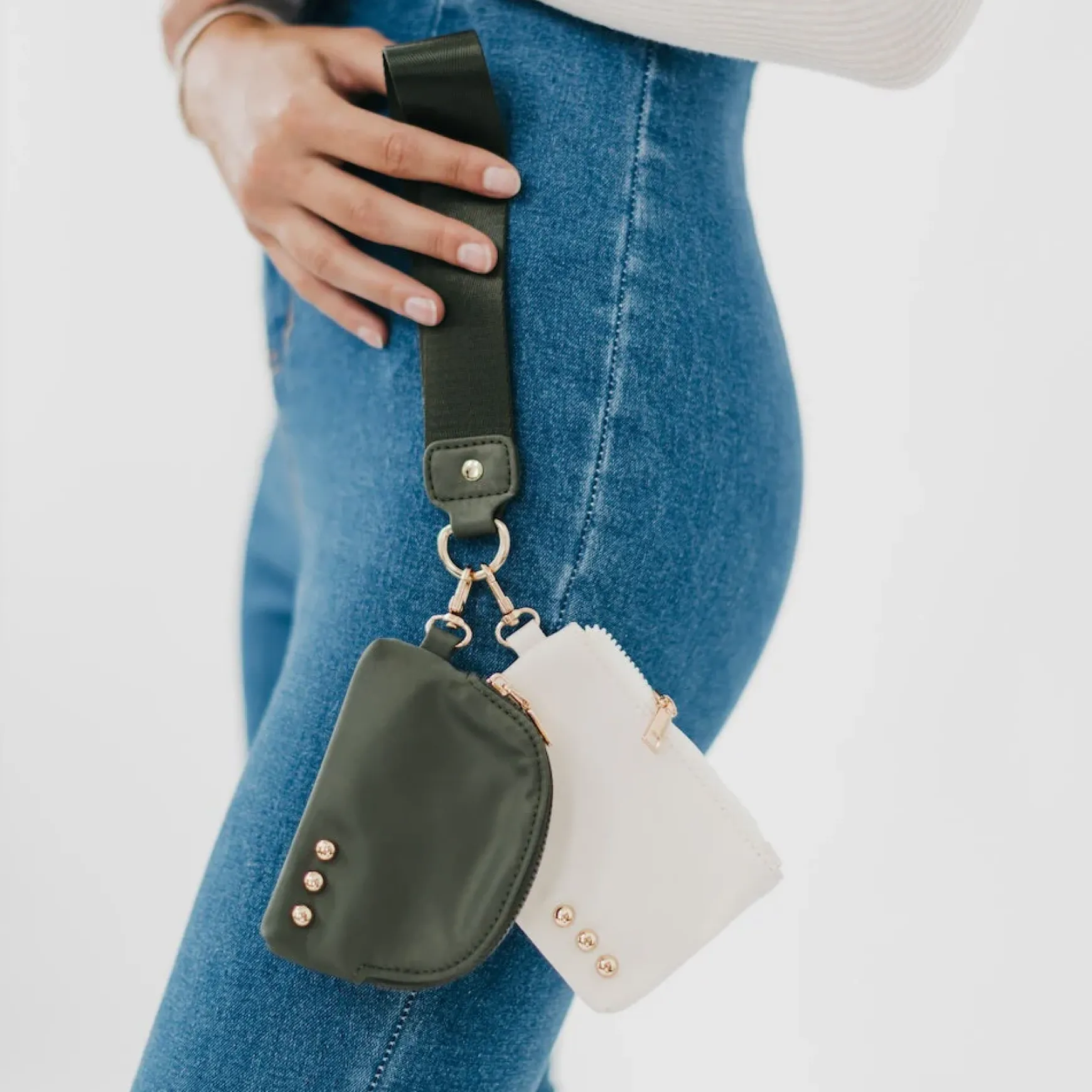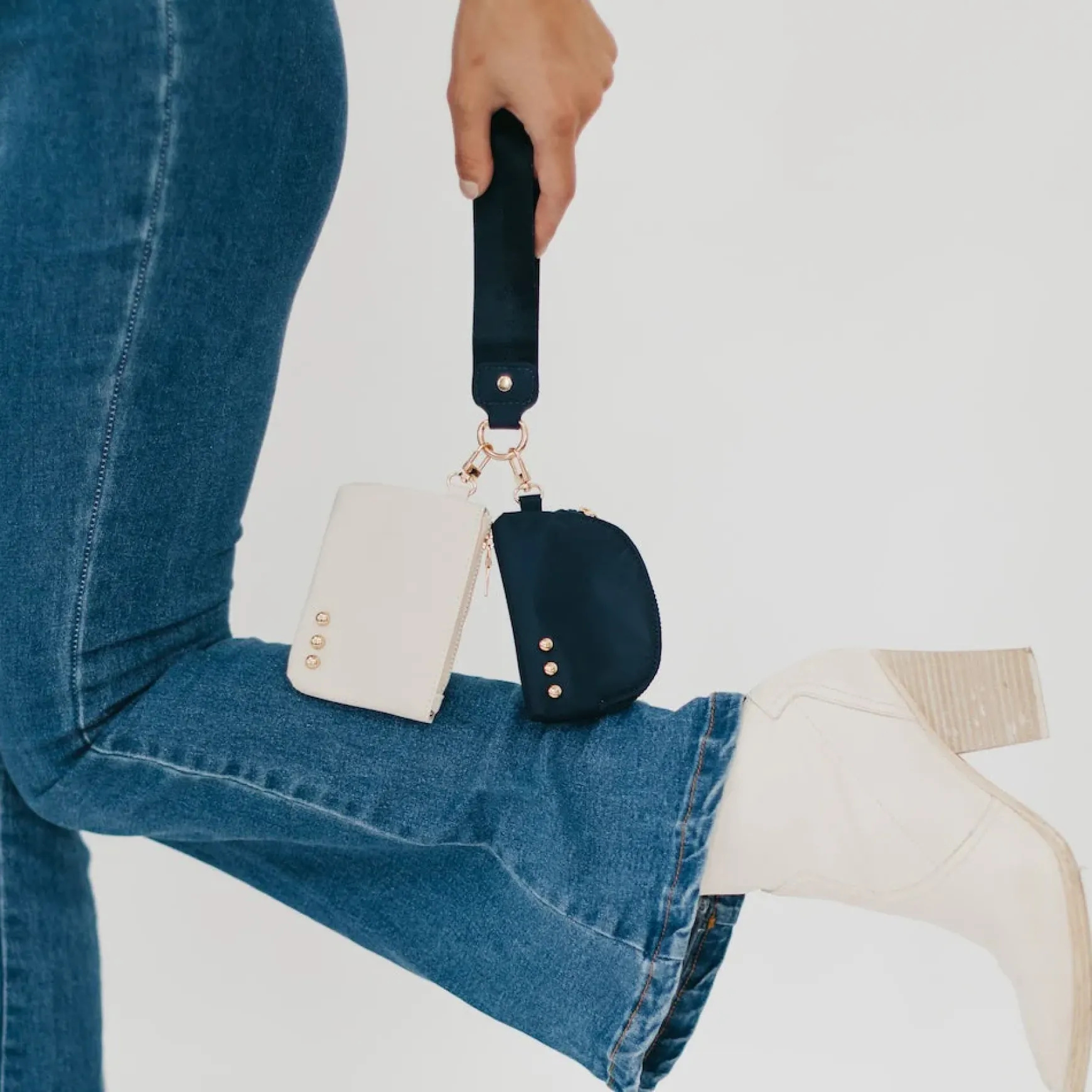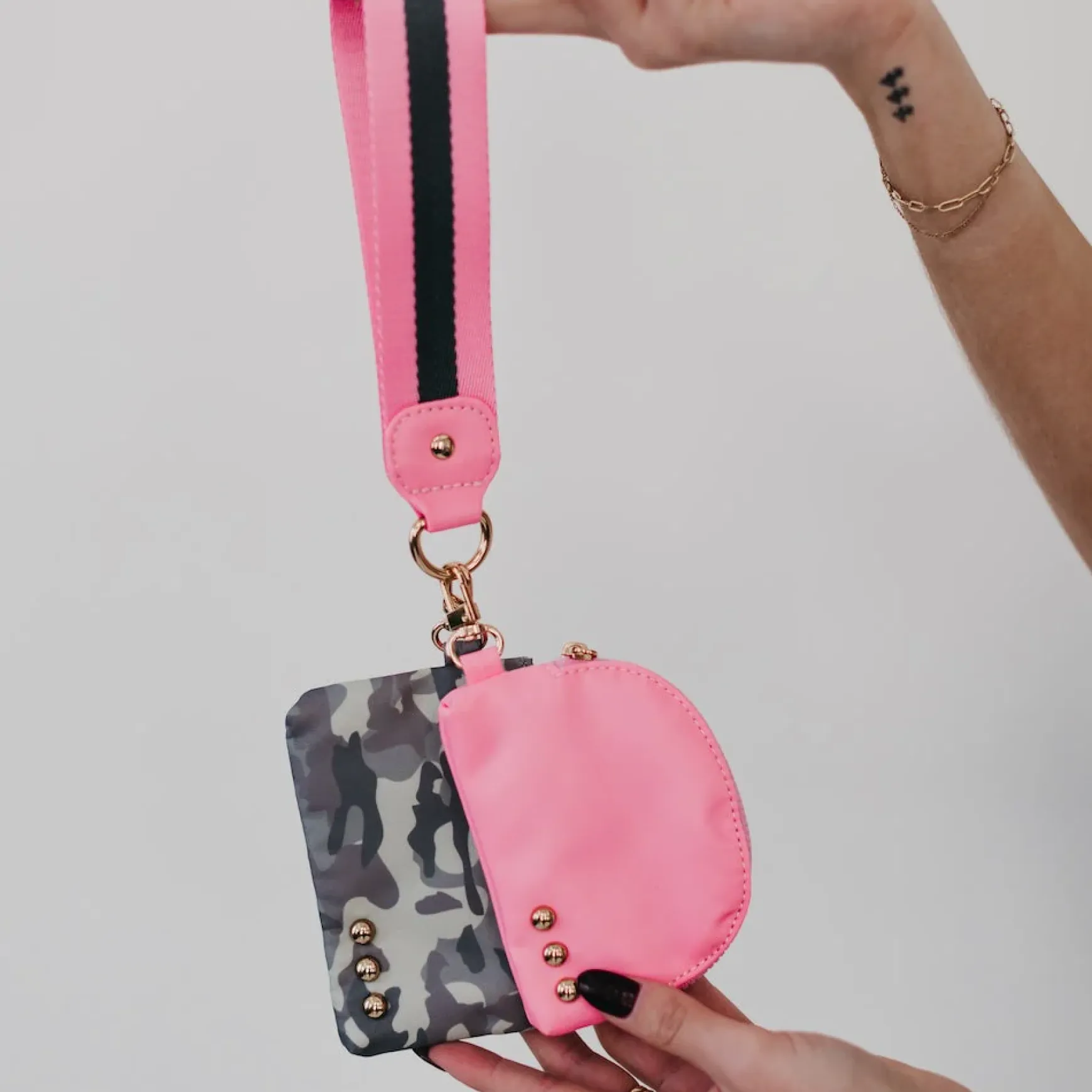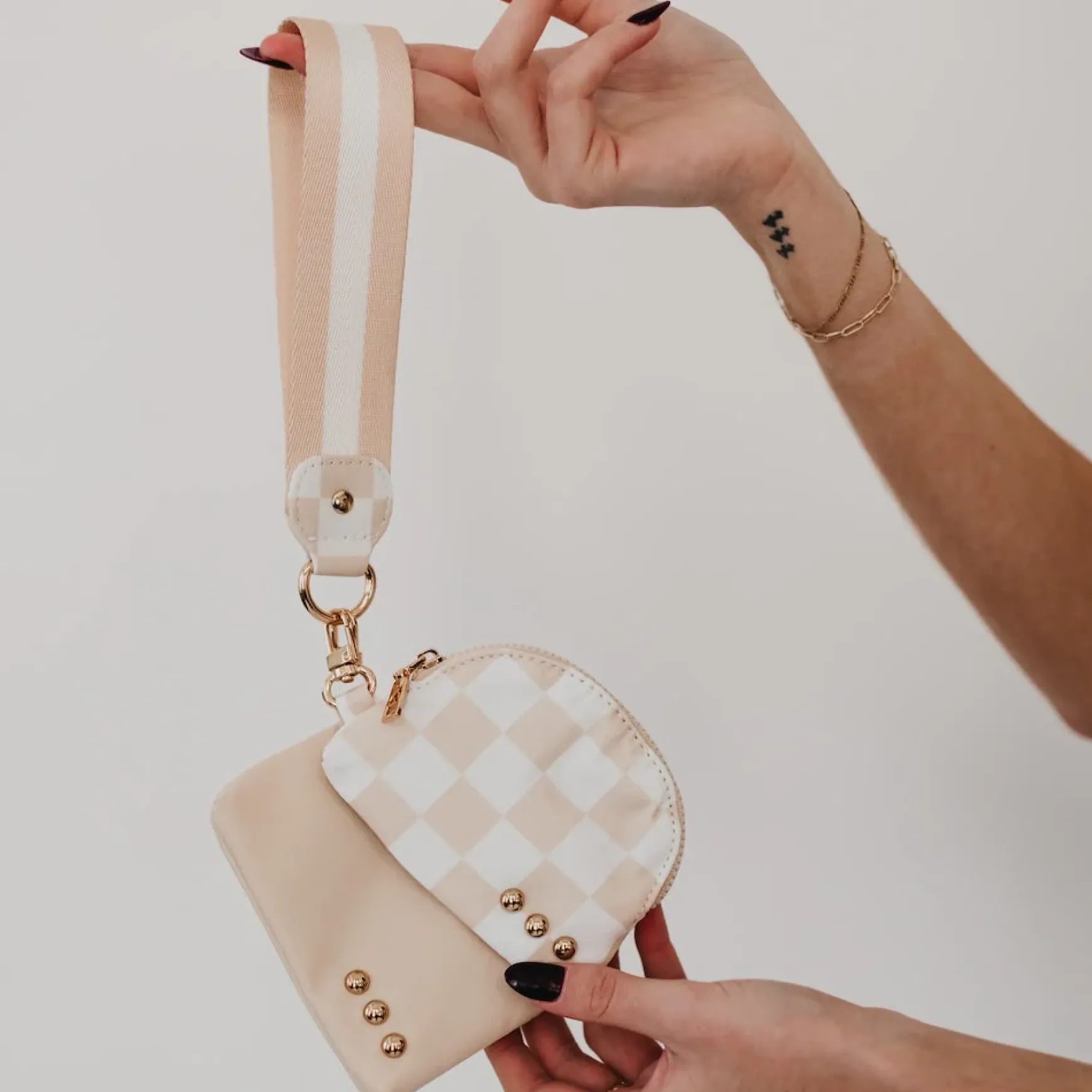 The Dolly Dual Pouch Wristlet is another addition to our 3 Sisters Collection! This collection is inspired by the unbreakable bond shared between the owner/founder of Pretty Simple and her 2 sisters. These bags are marked with three signature studs and will complete outfits, catch eyes, and remind wearers of the incredible connection to their own sisters, whether through blood or by choice. You can see it in our inspiration and mission.