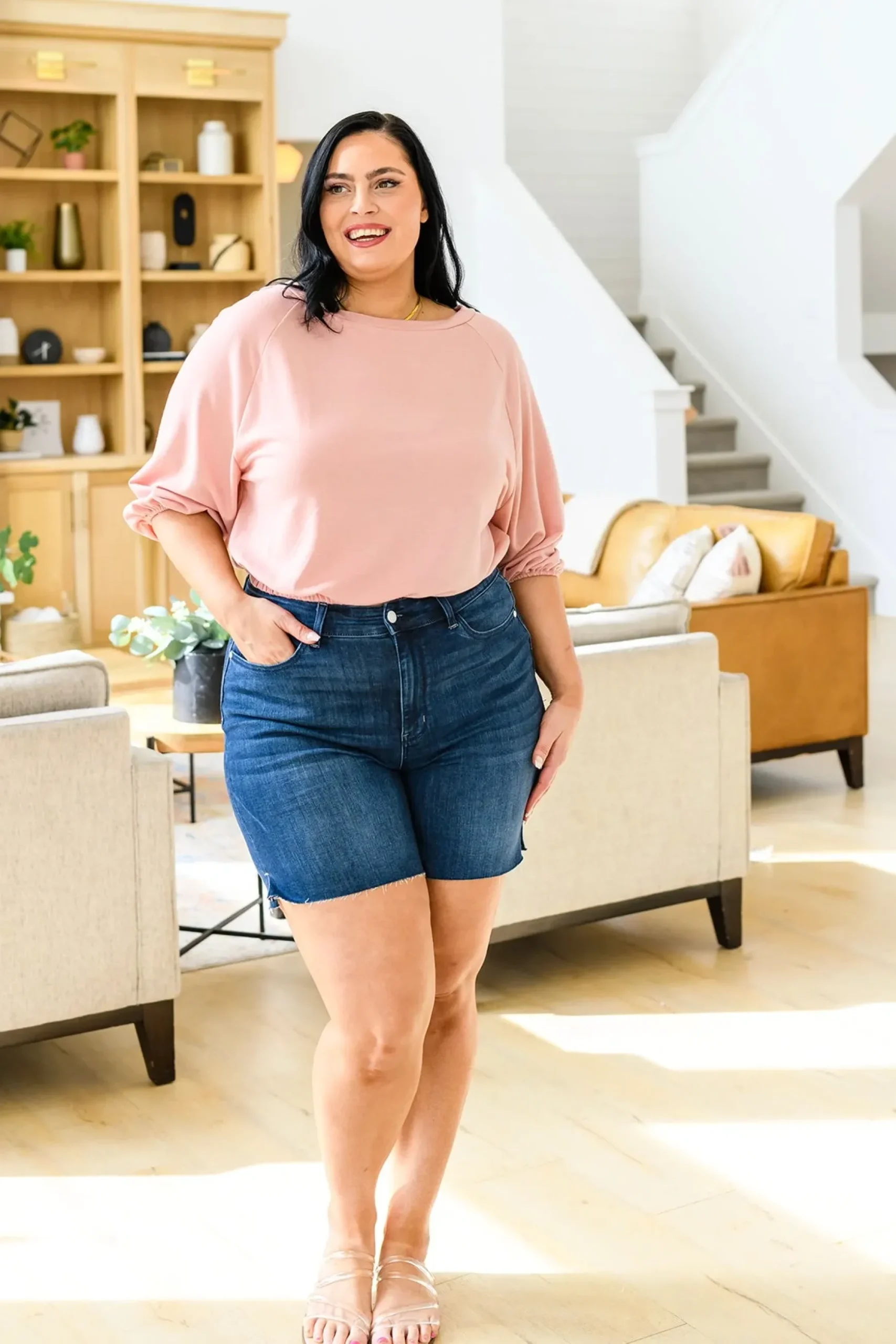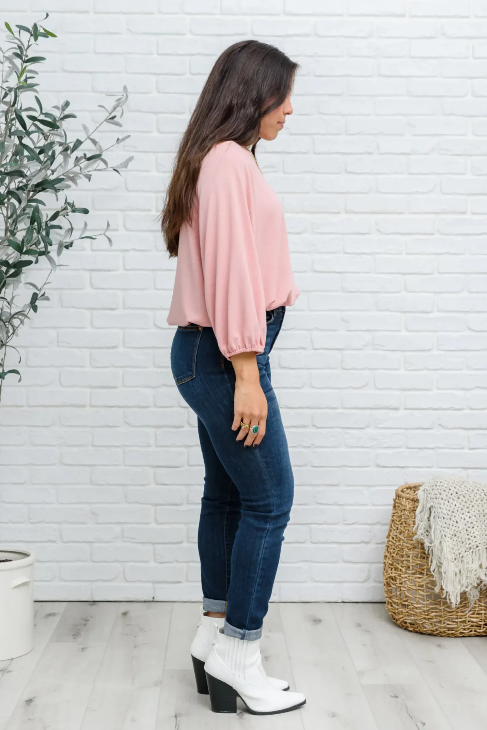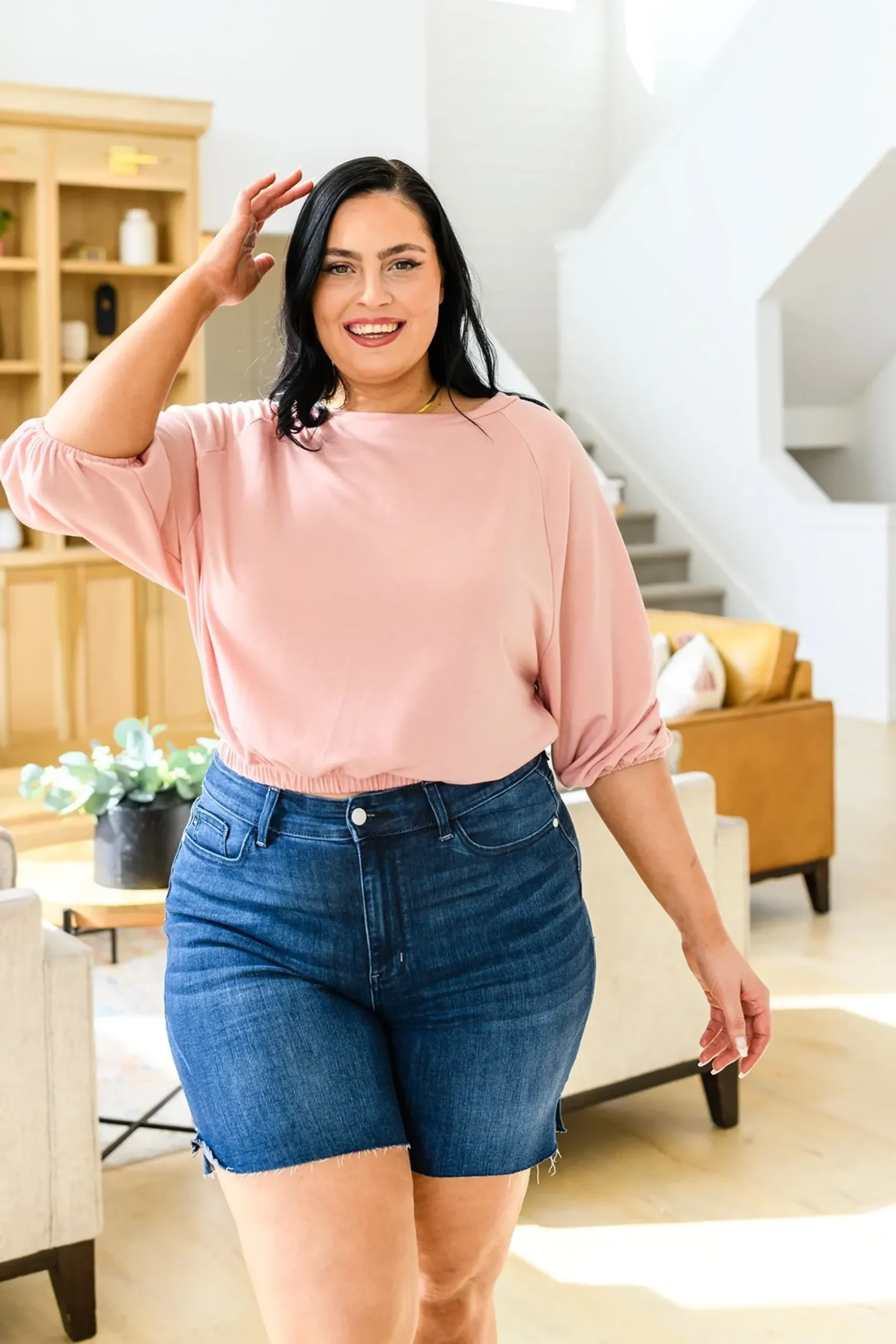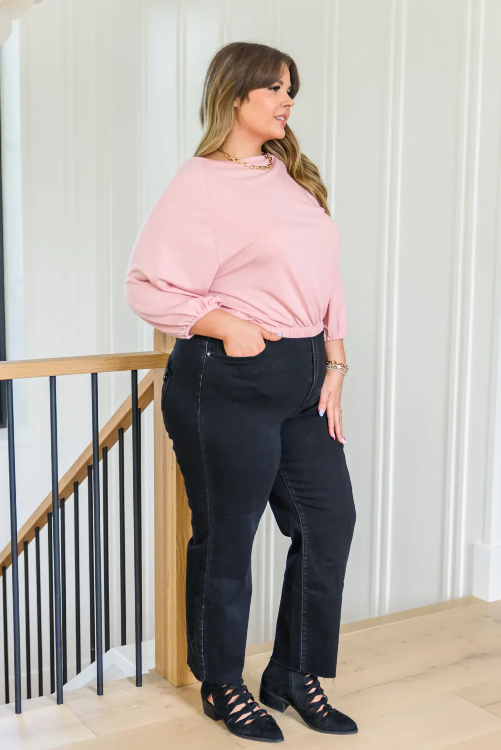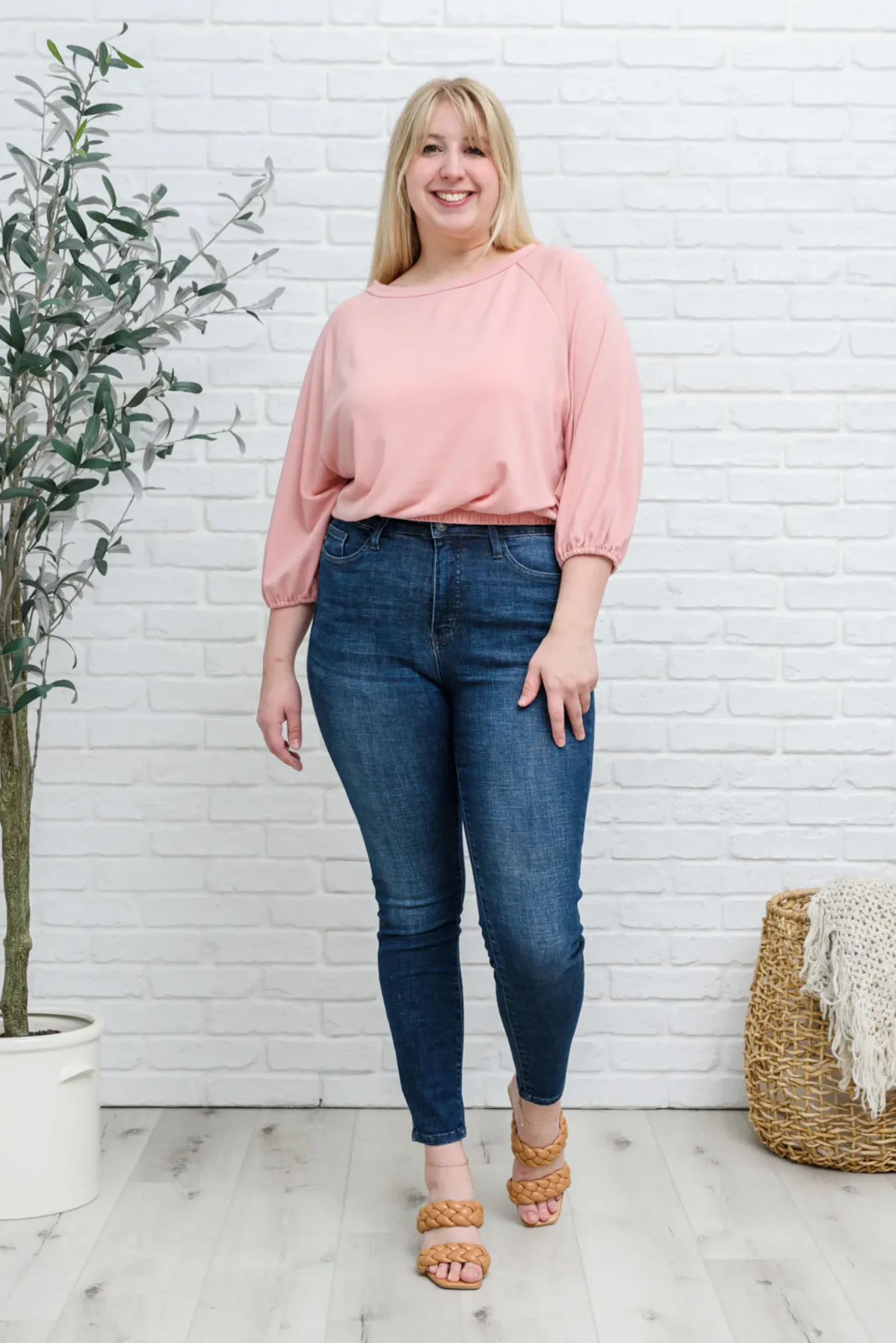 The Don’t Go Yet Top was made for maximum comfort and style! The elasticated cuffs and waistband combined with the three-quarter balloon sleeves, round neckline, and soft jersey fabric make for the perfect go to top! Pair with denim and pumps for a chic look!