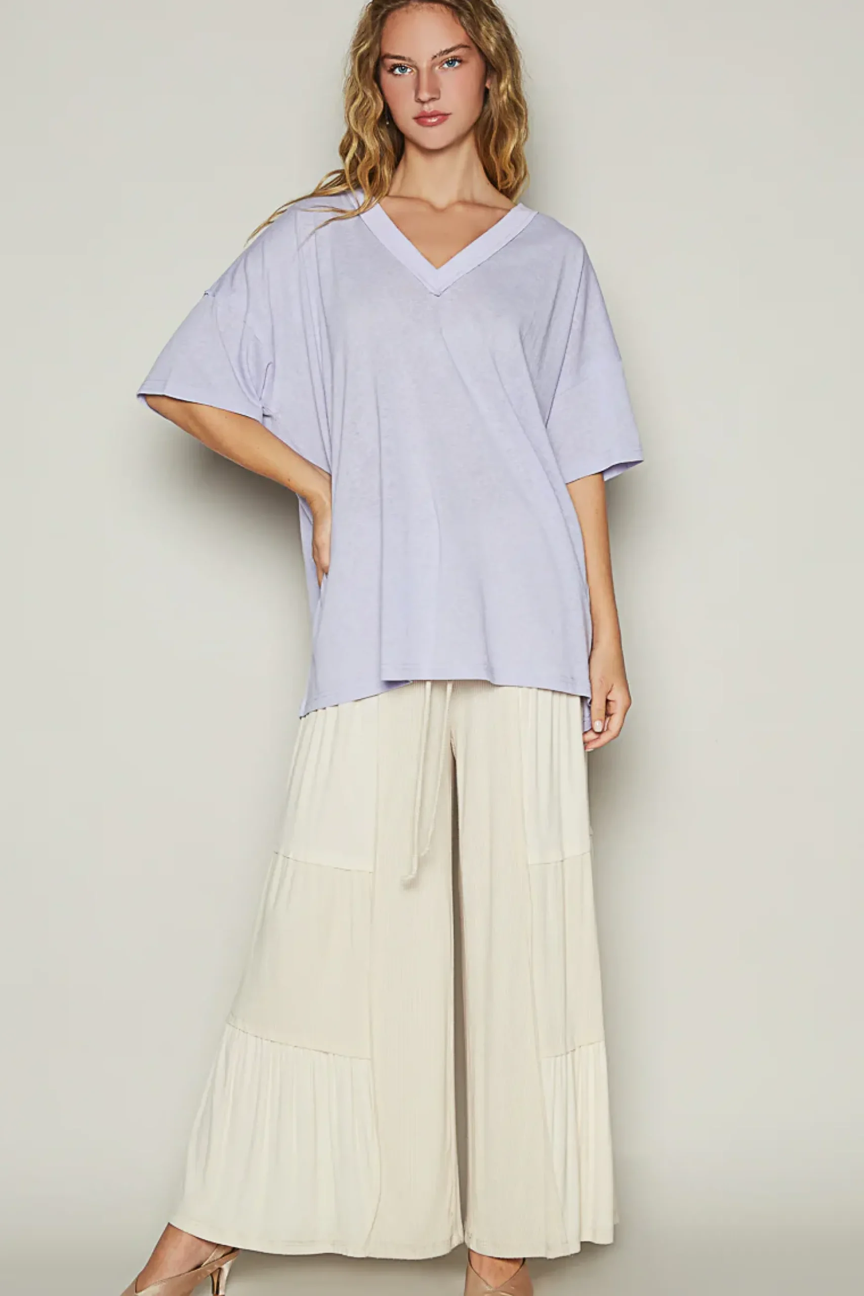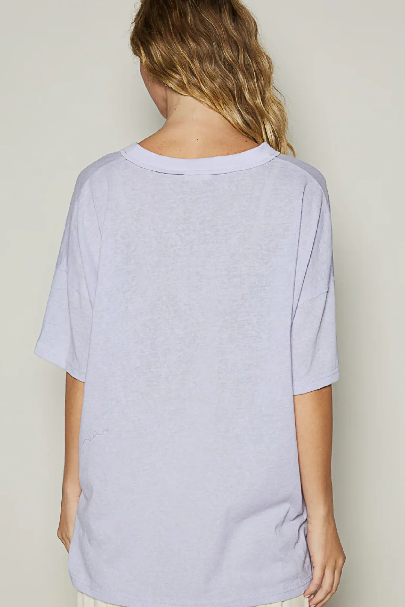 Designed in V-neck short sleeve roomy fit top in POL-jersey with stone washing.