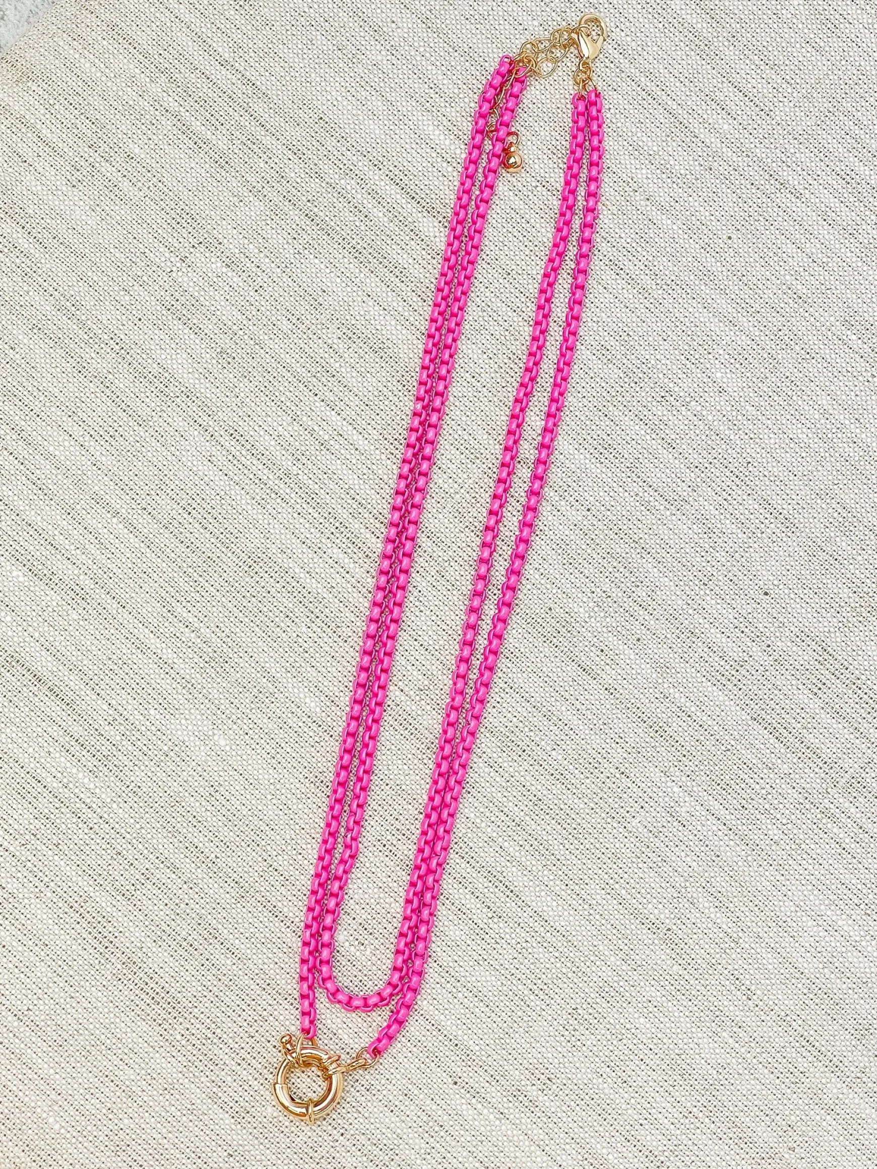 Be the first to review “Enamel Box Chain Layered Necklace – Pink” Cancel reply